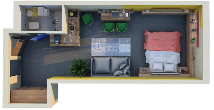 Однокомнатные апартаменты (2 апартаментов, 2 планировки)