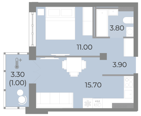 Однокомнатные апартаменты (6 апартаментов, 5 планировок)