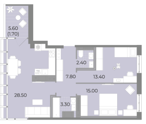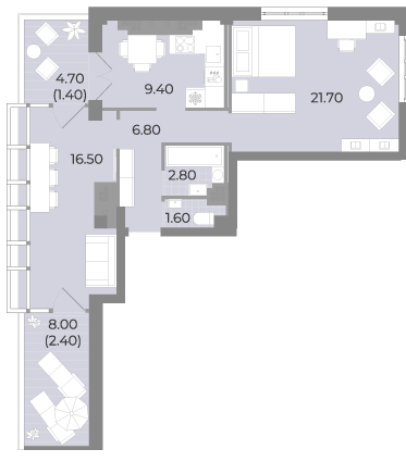 Двухкомнатные апартаменты (9 апартаментов, 9 планировок)