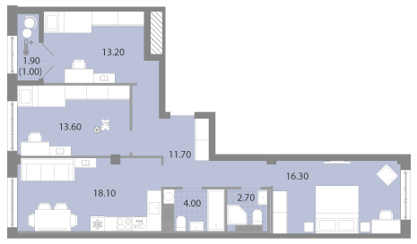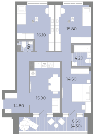 Трехкомнатные апартаменты (5 апартаментов, 5 планировок)