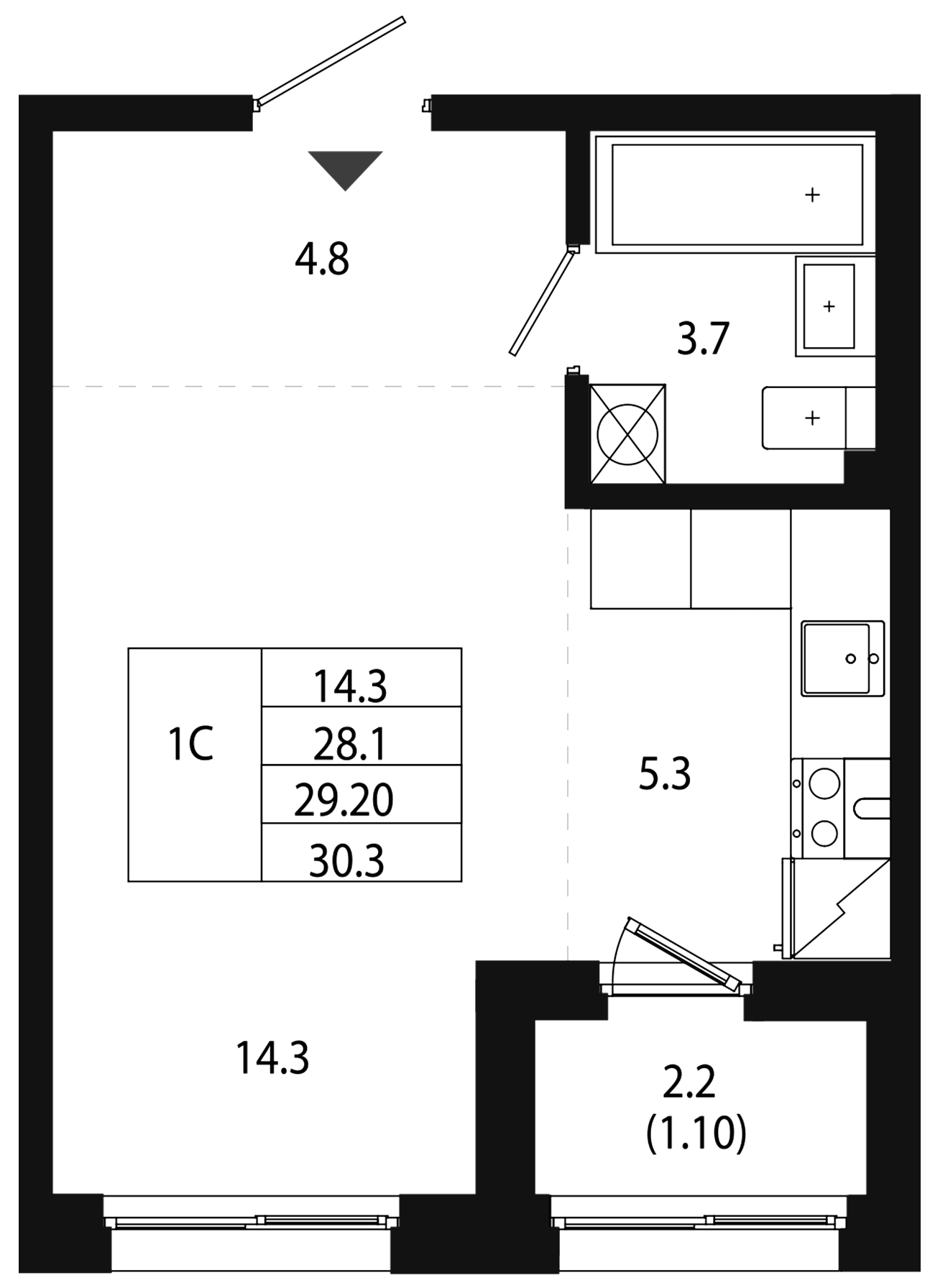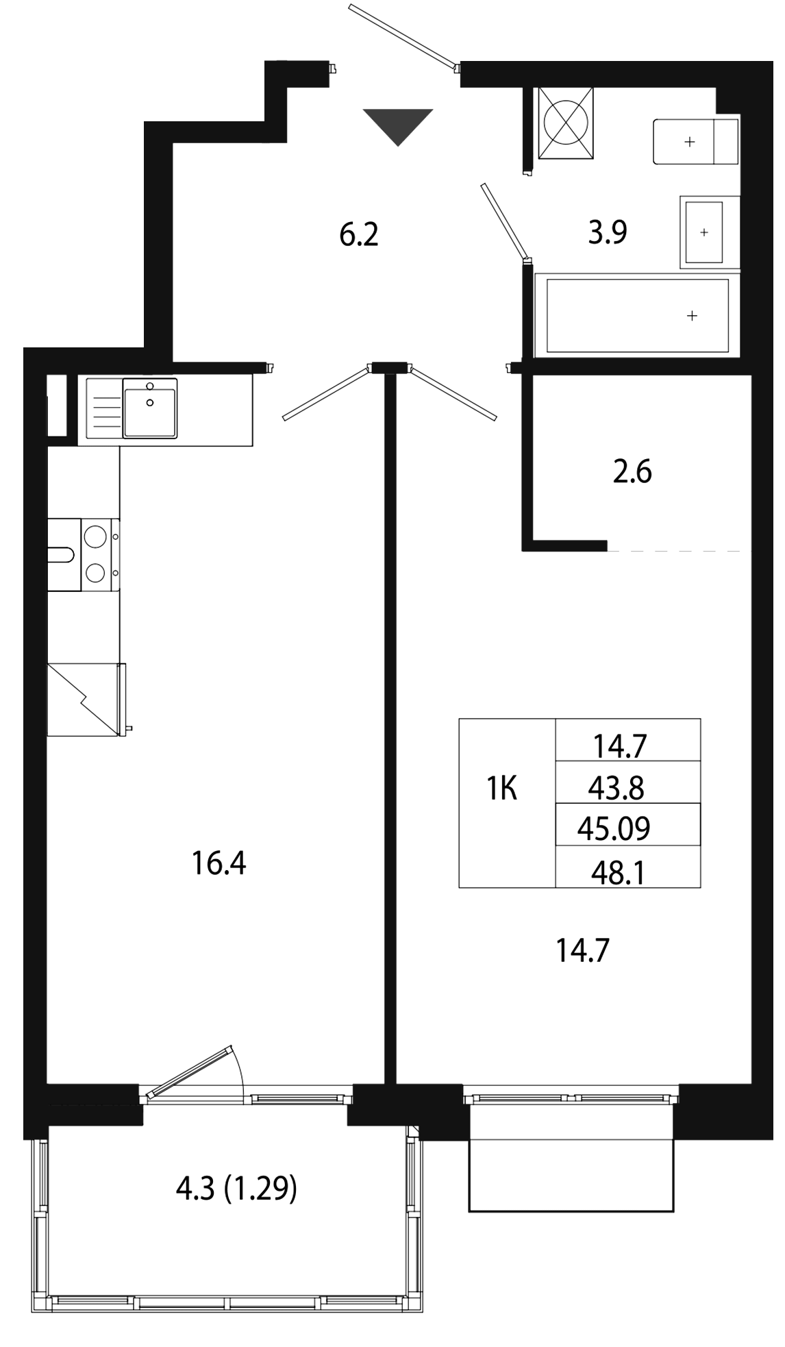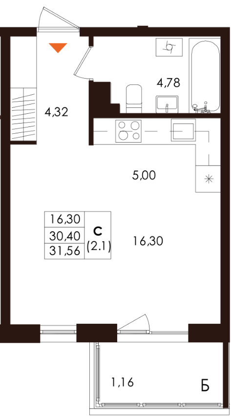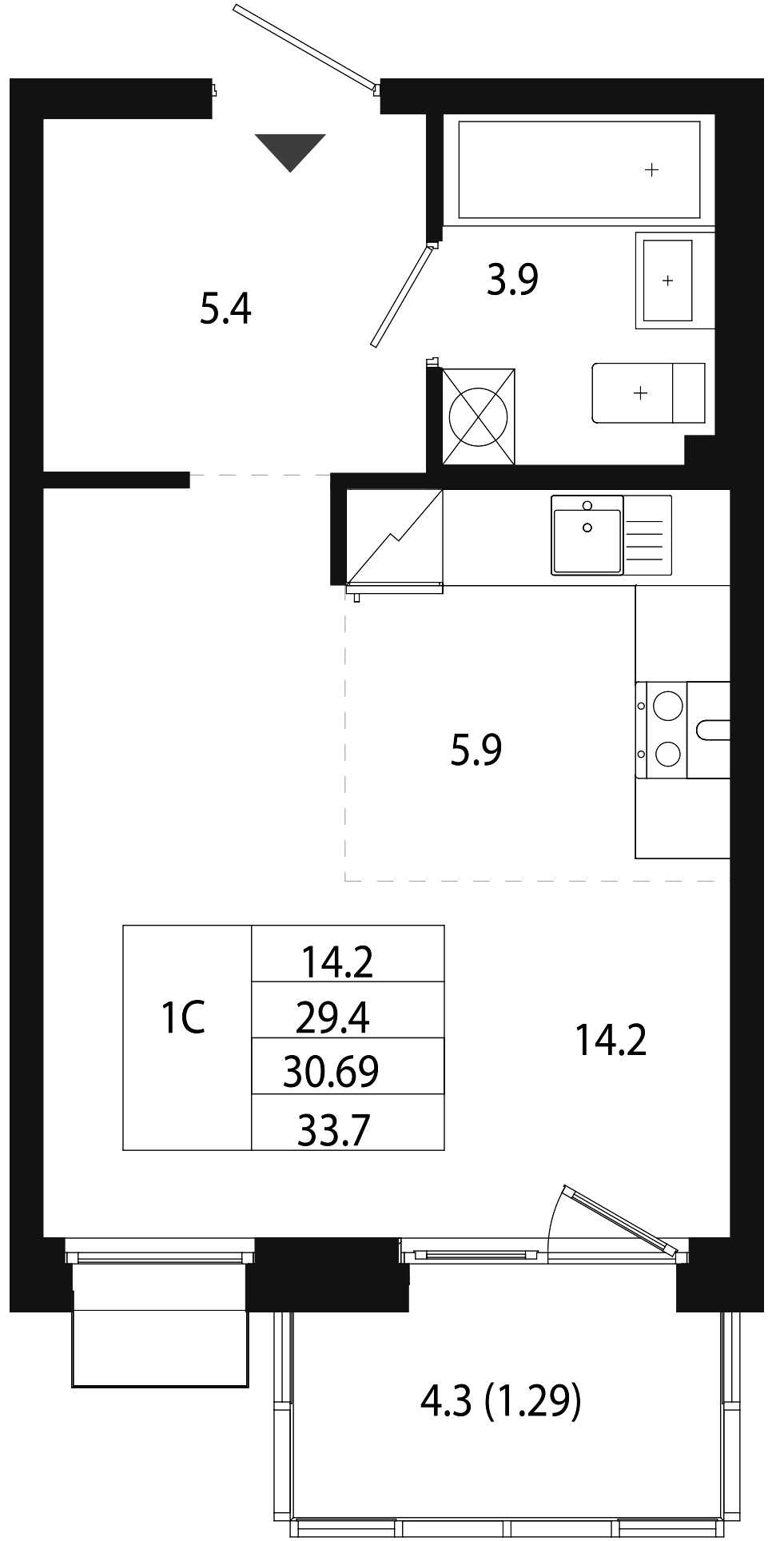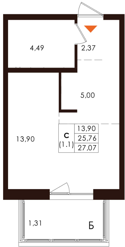 Однокомнатные квартиры (21 квартира, 20 планировок)