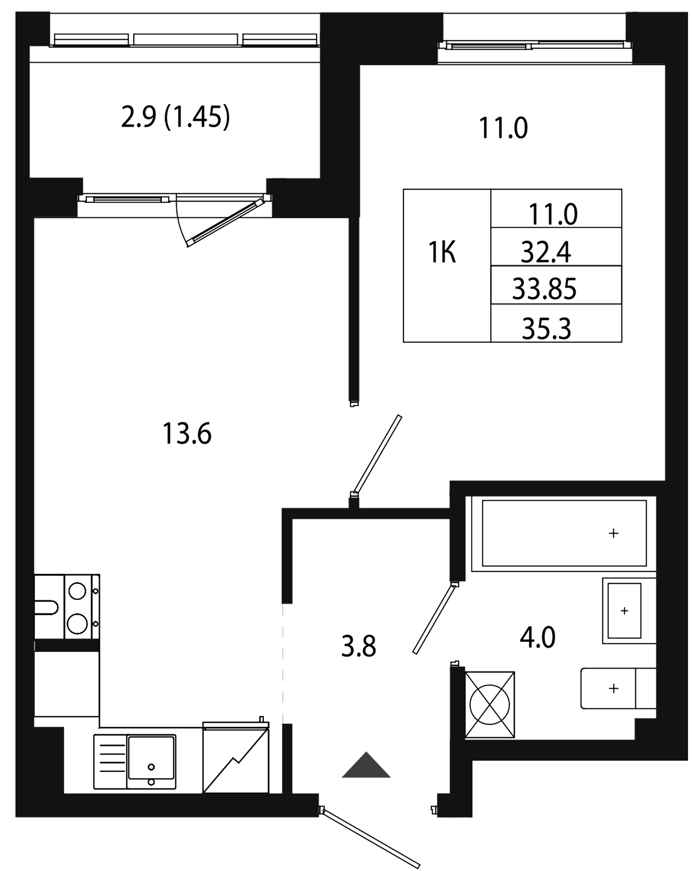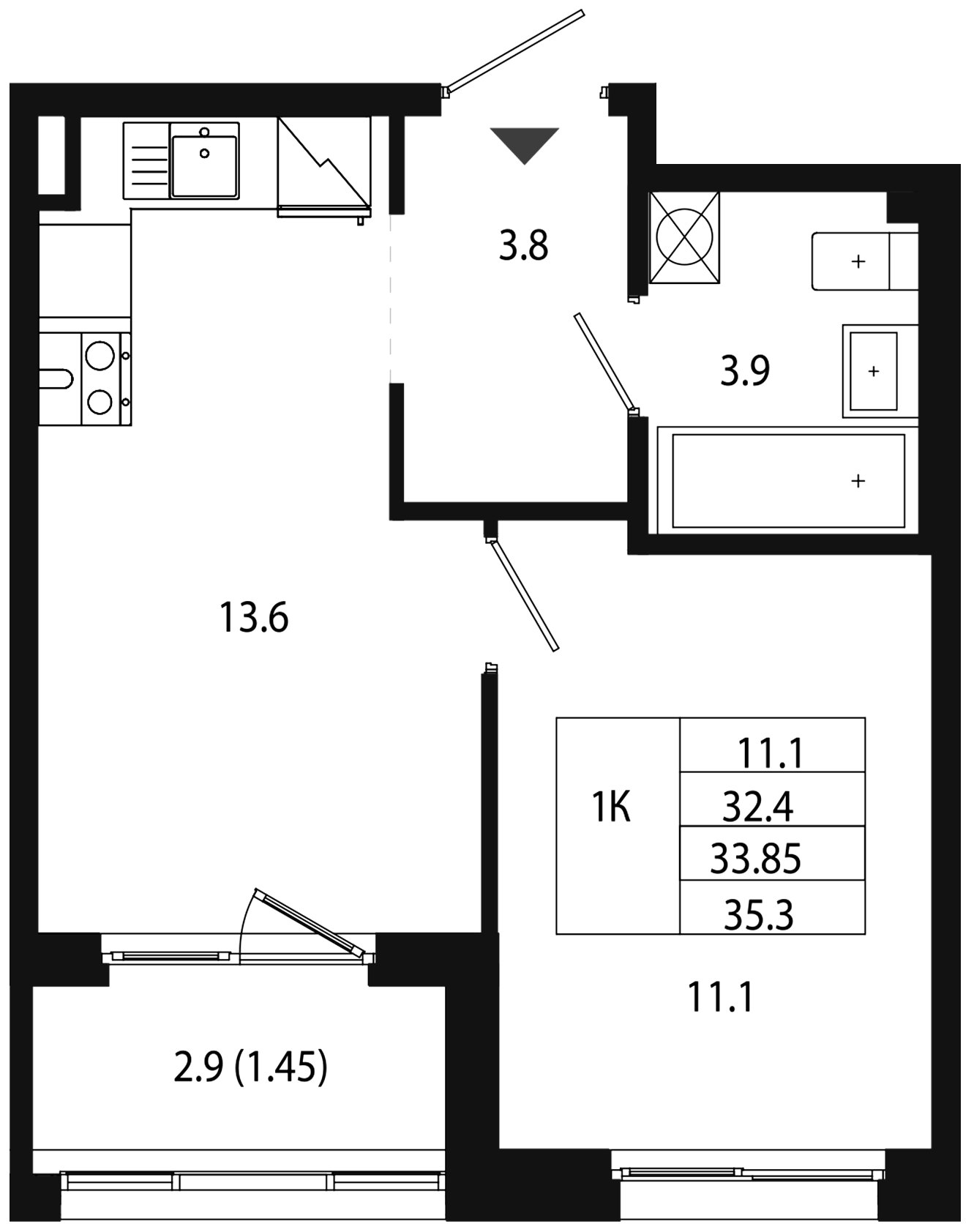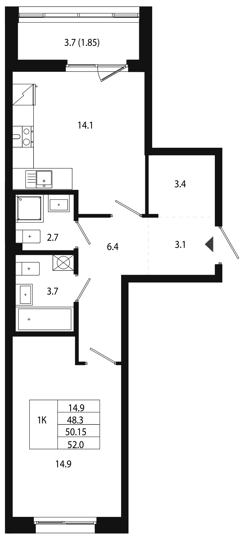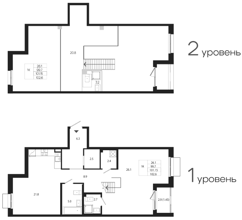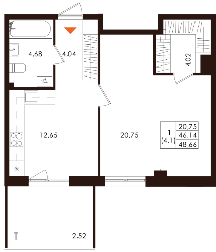 Однокомнатные квартиры (21 квартира, 20 планировок)