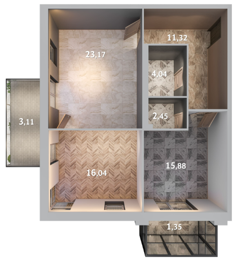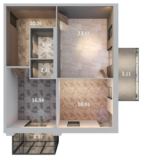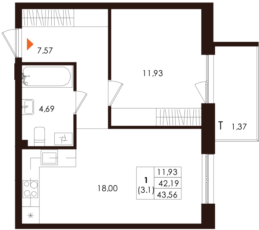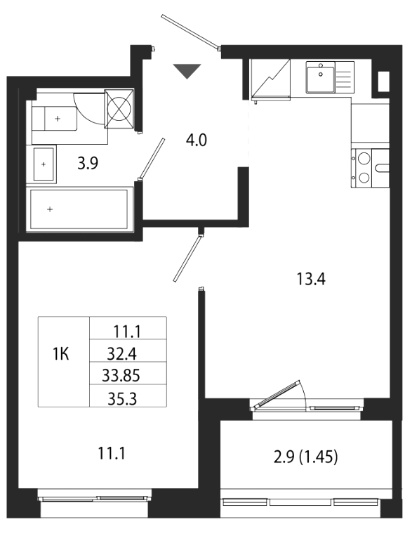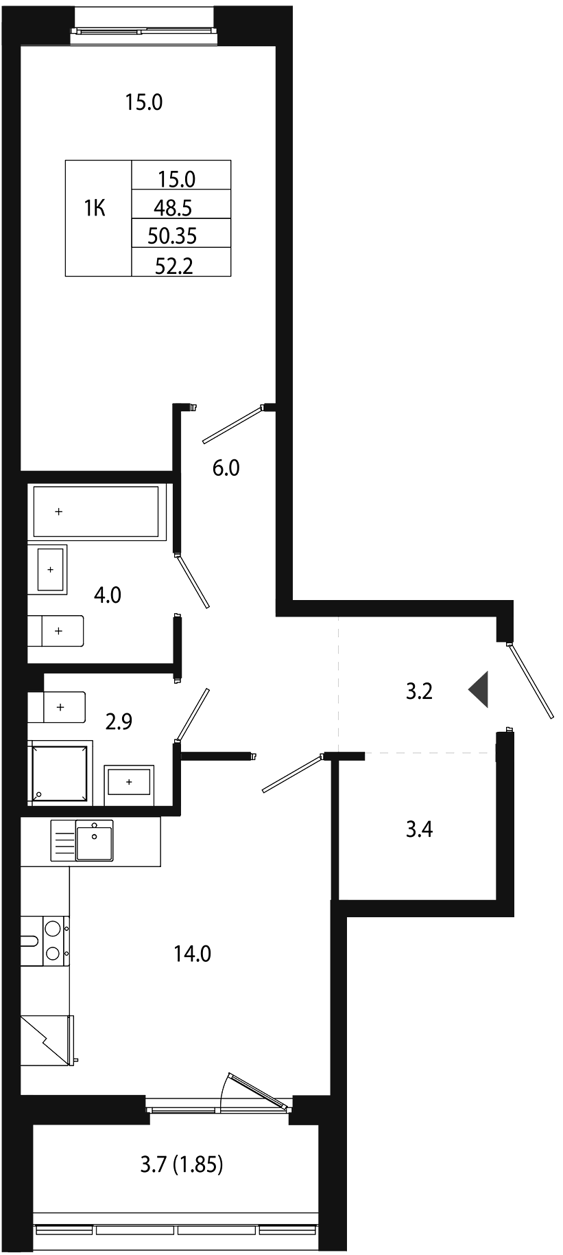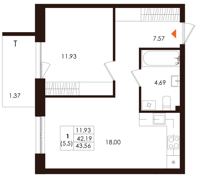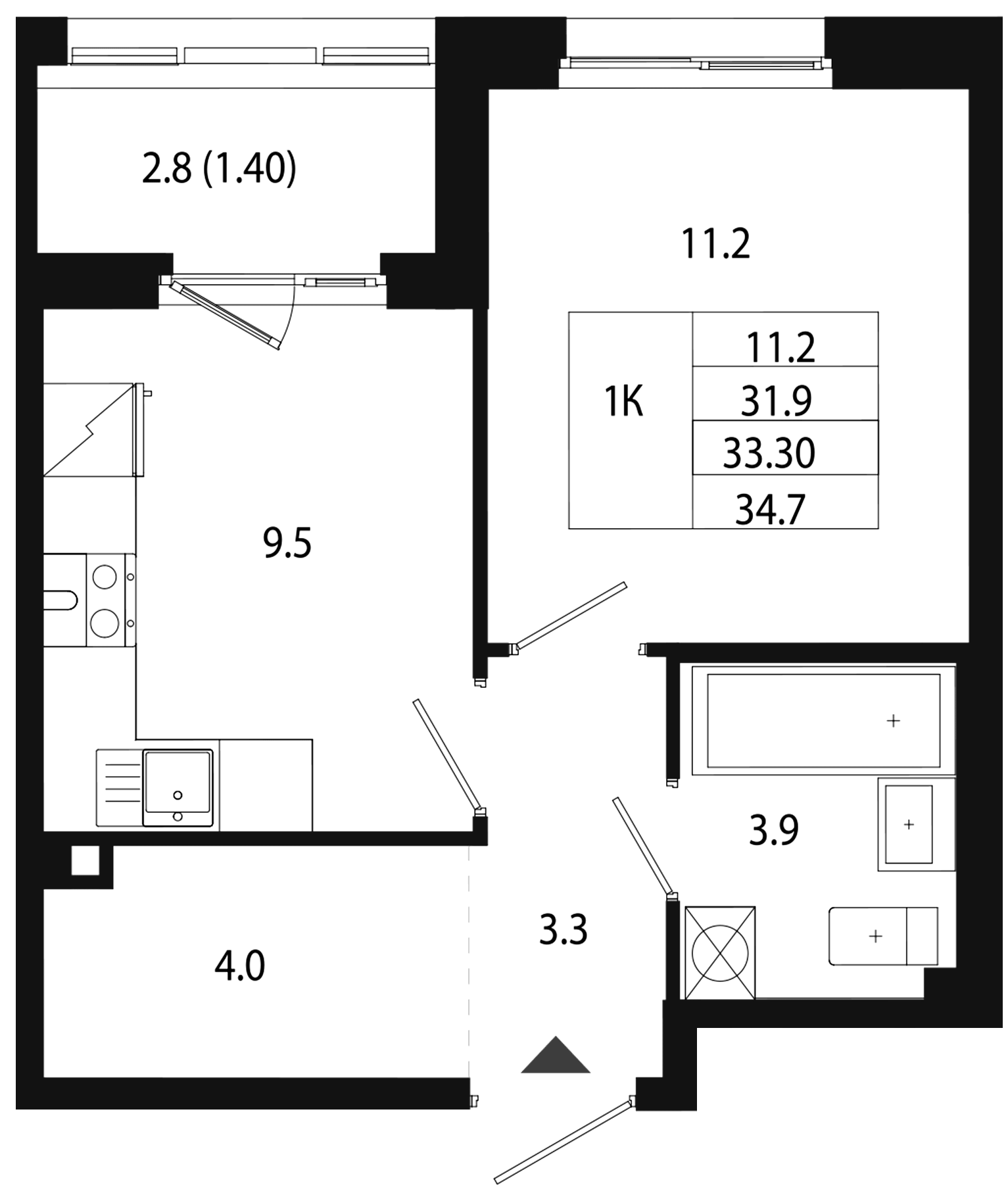 Однокомнатные квартиры (21 квартира, 20 планировок)