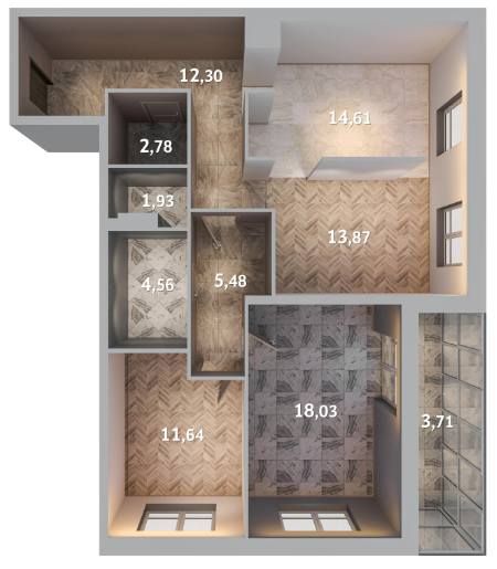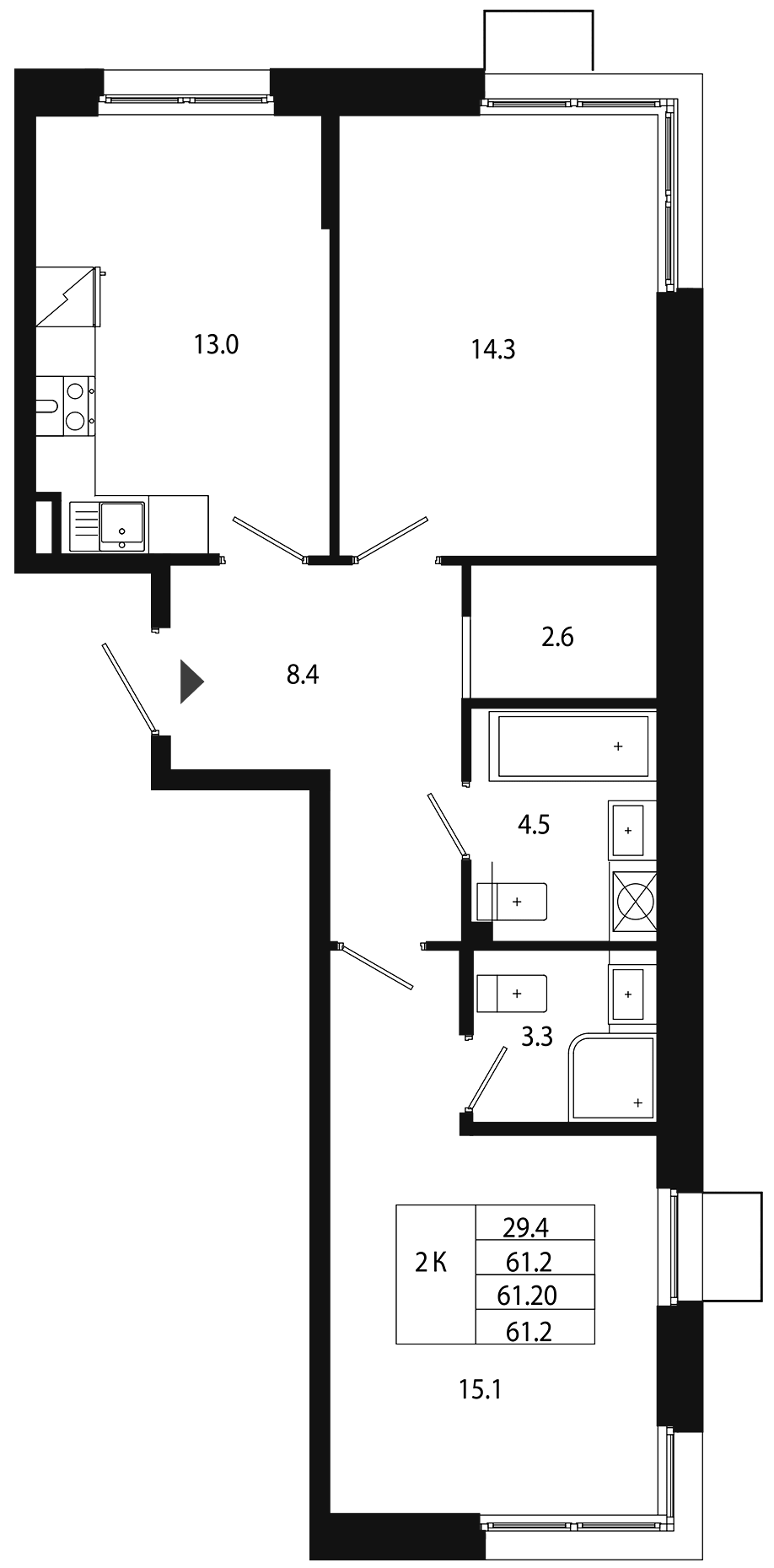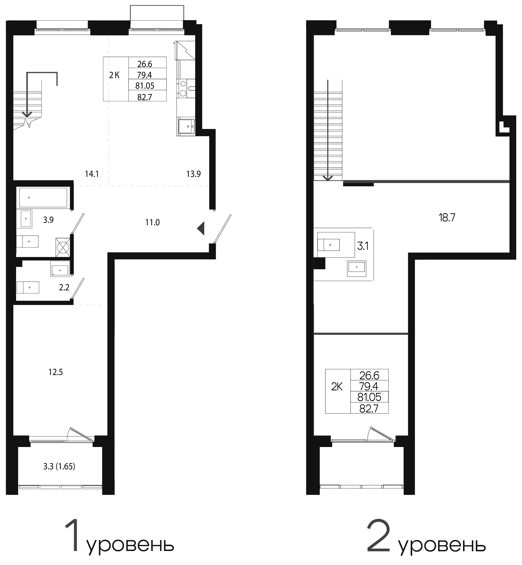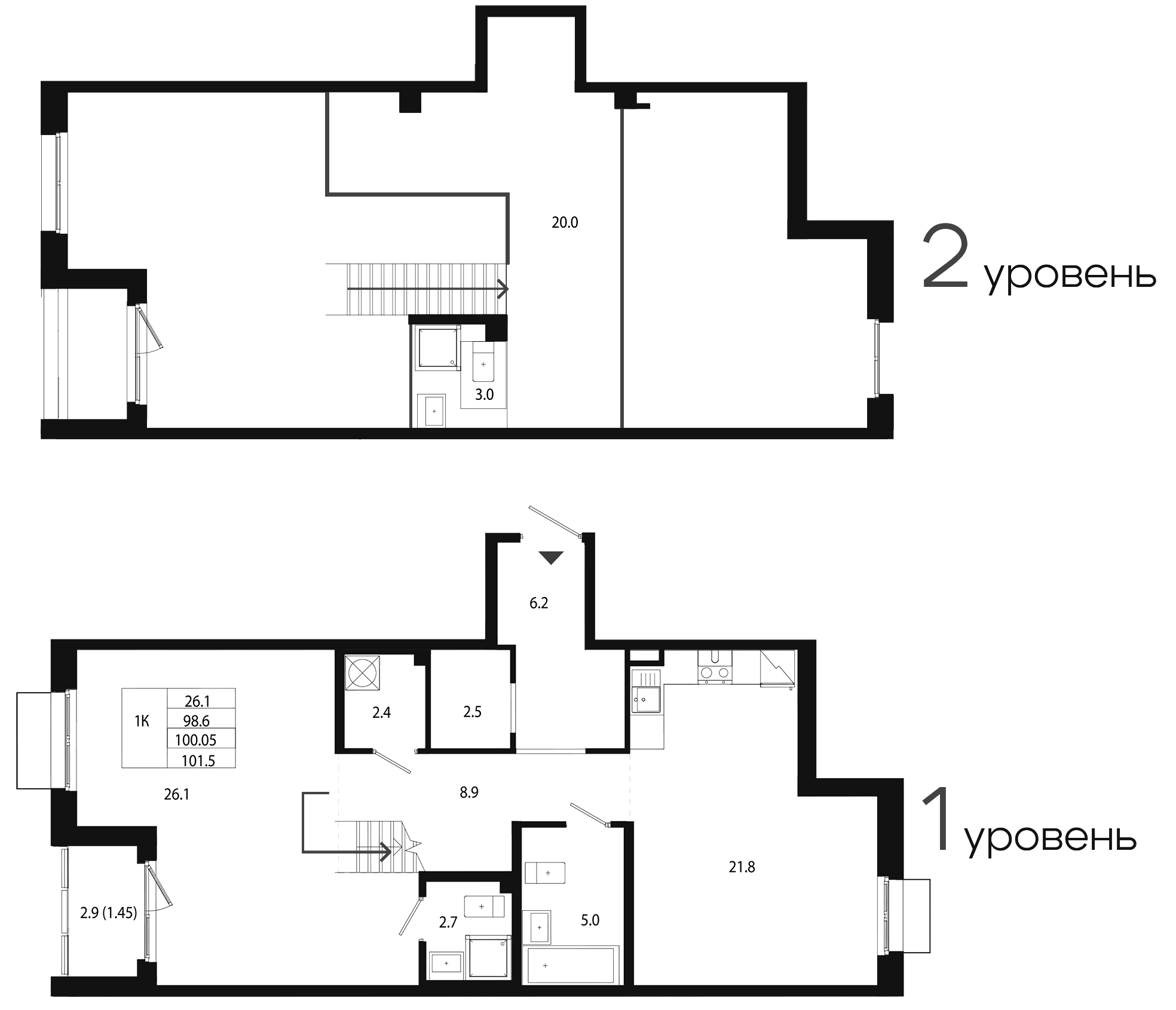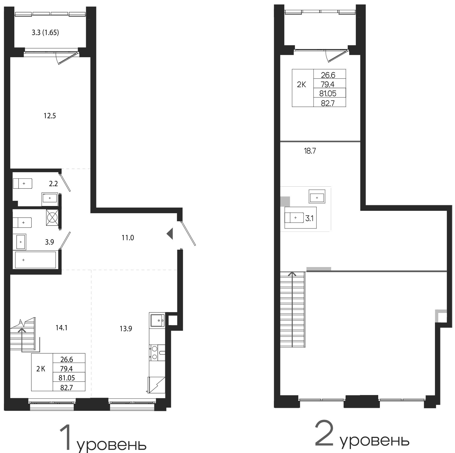 Двухкомнатные квартиры (20 квартир, 20 планировок)