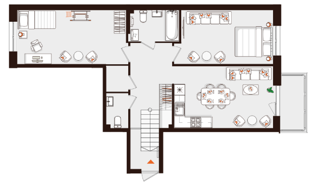 Планировочные решения представлены вариантами с саунами, террасами, мастер-спальнями с гардеробными, постирочными, угловыми окнами. Присутствуют квартиры евроформата, урбан-виллы и двухуровневые лоты.