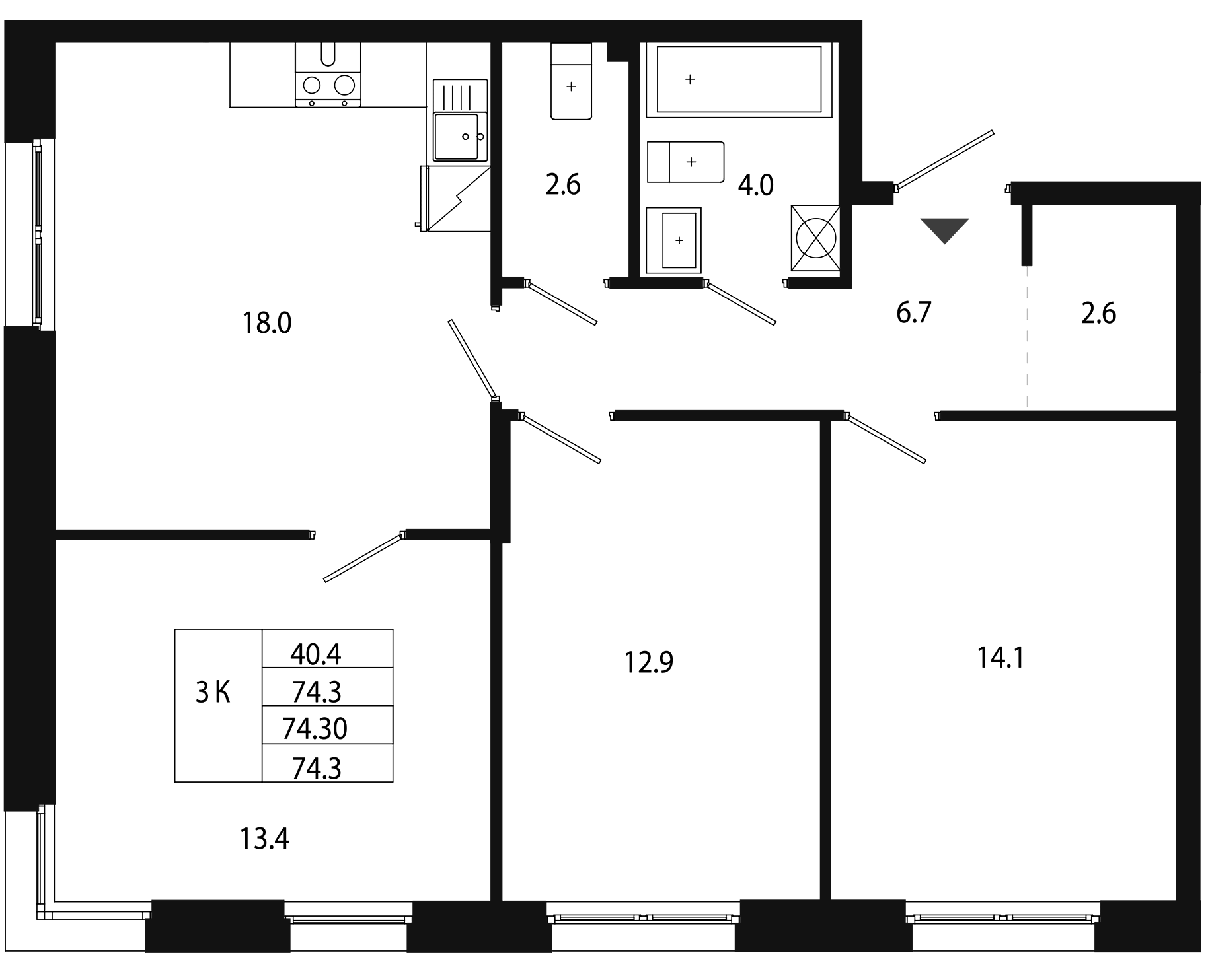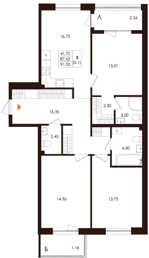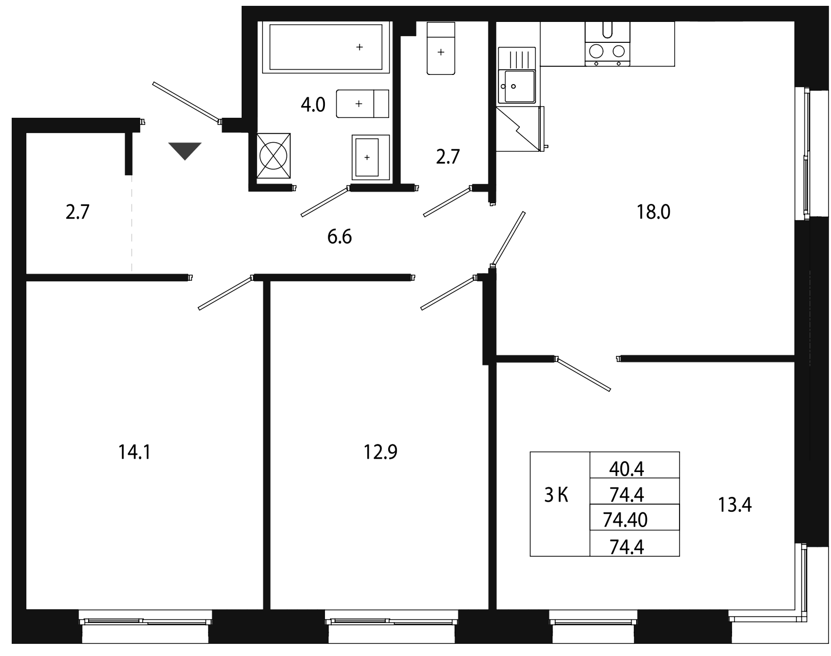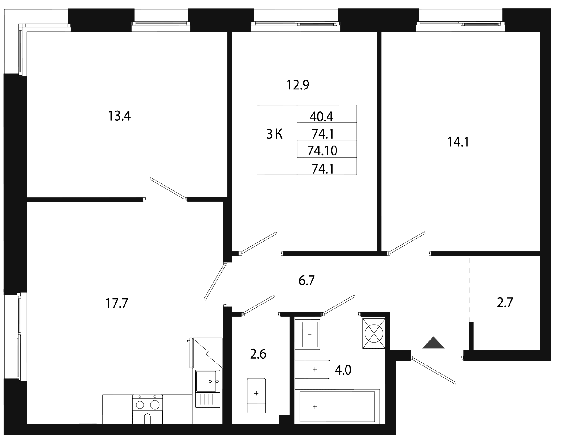 Трехкомнатные квартиры (14 квартир, 14 планировок)