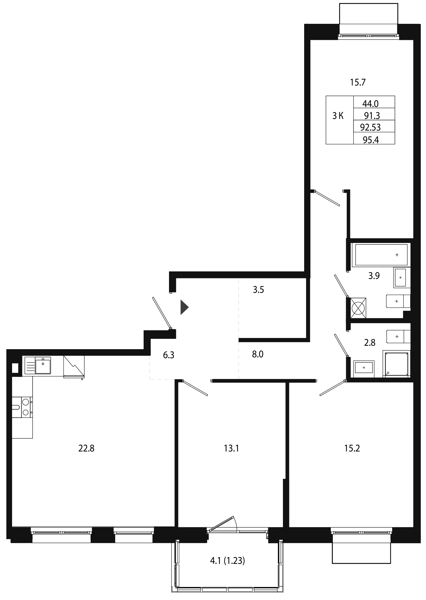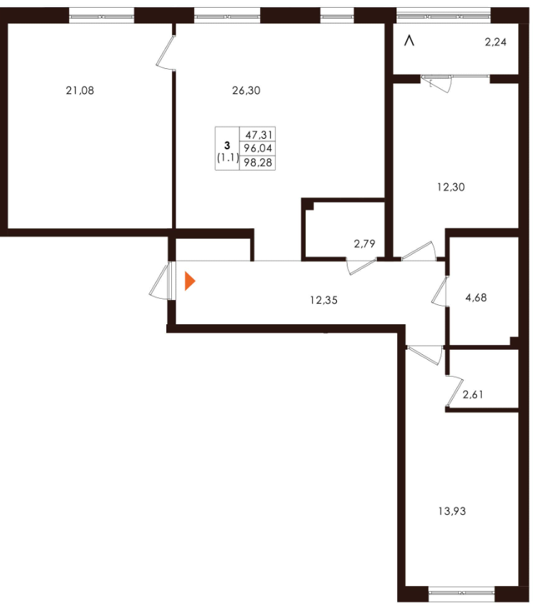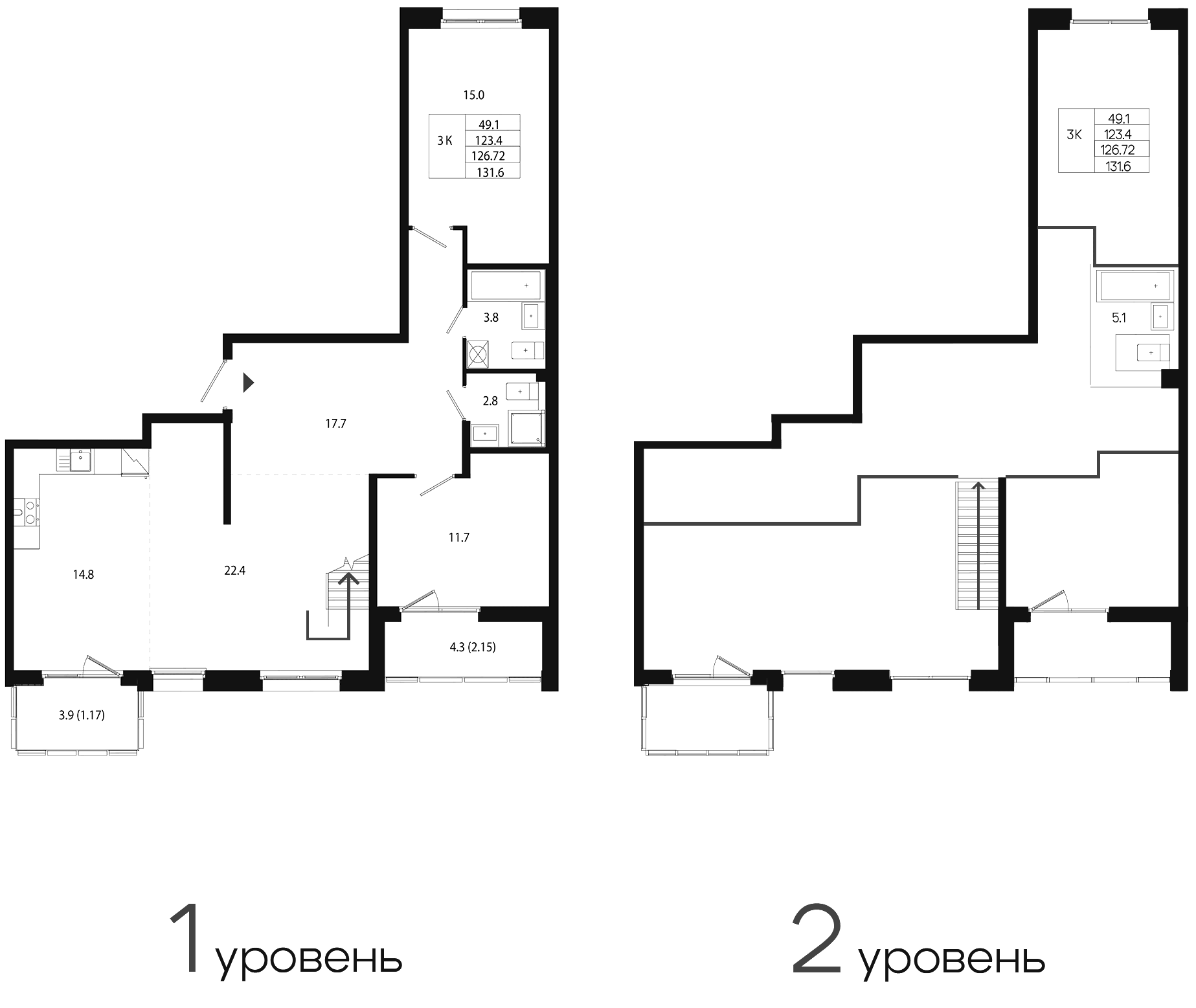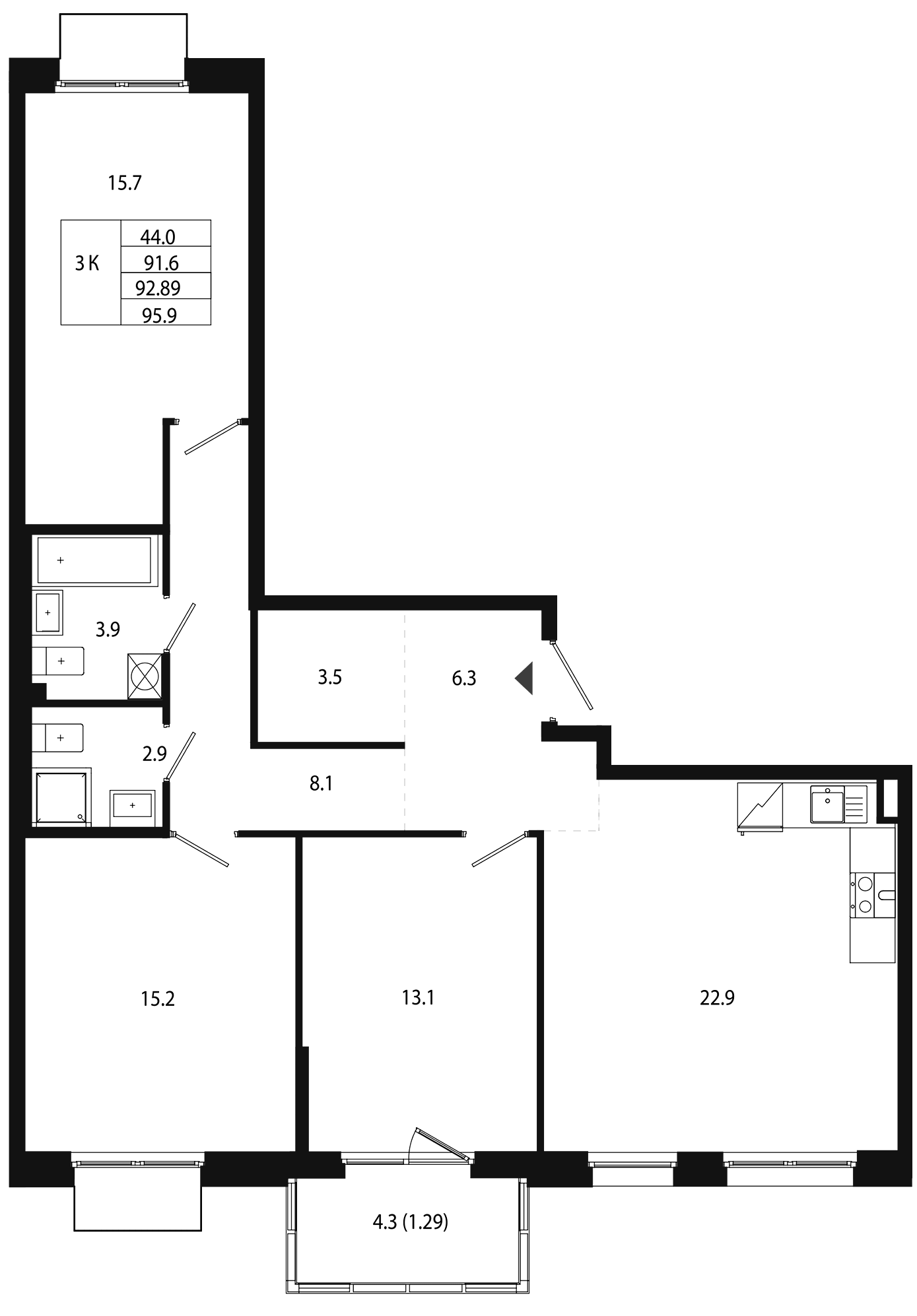 Трехкомнатные квартиры (14 квартир, 14 планировок)