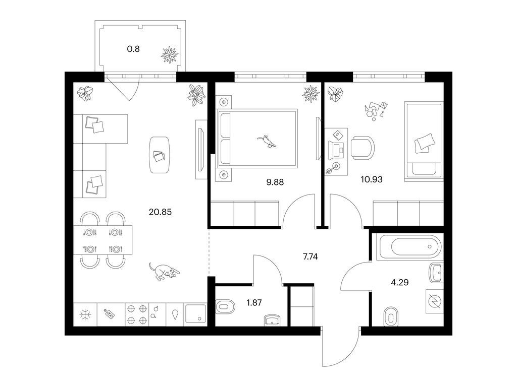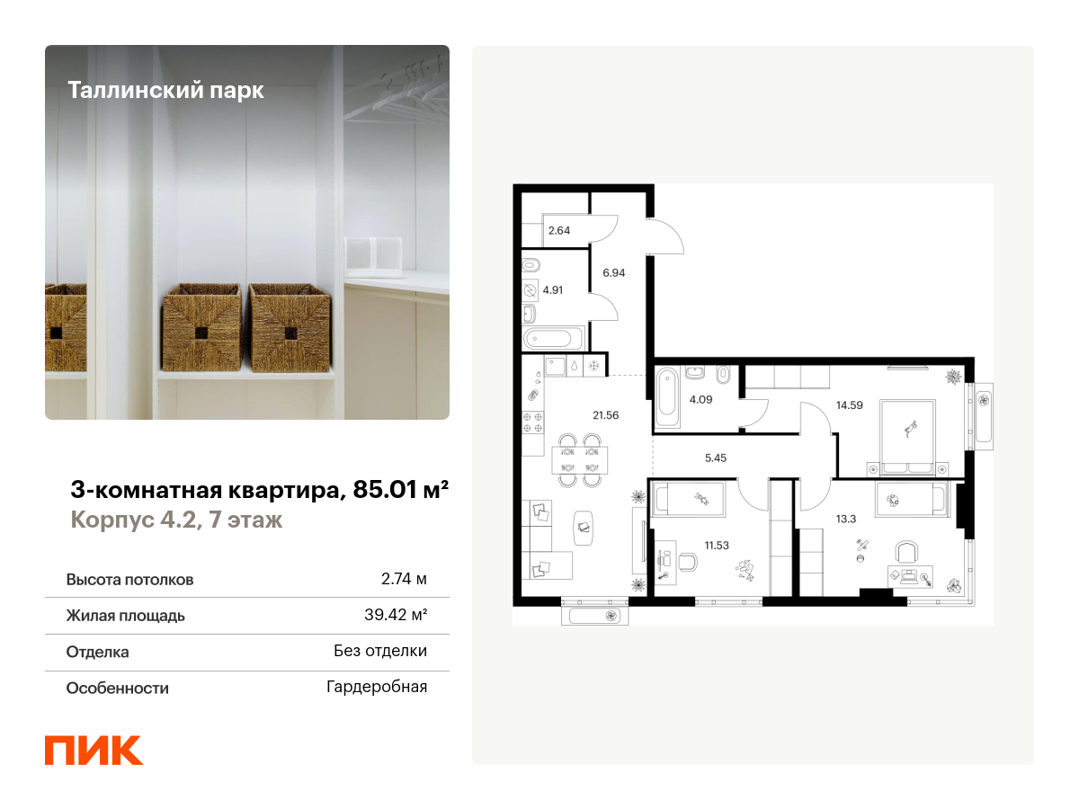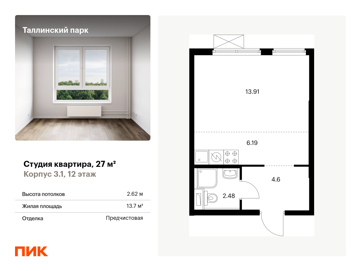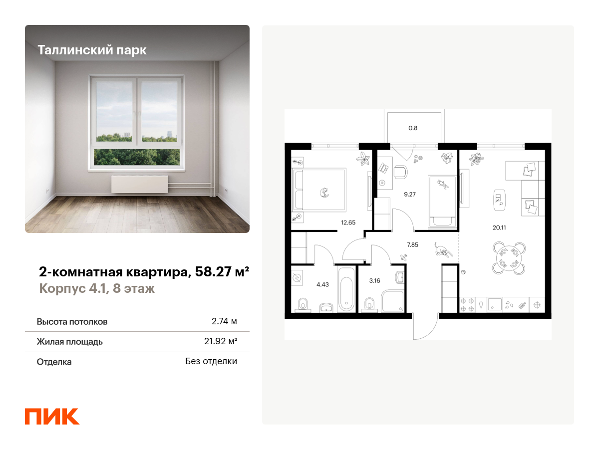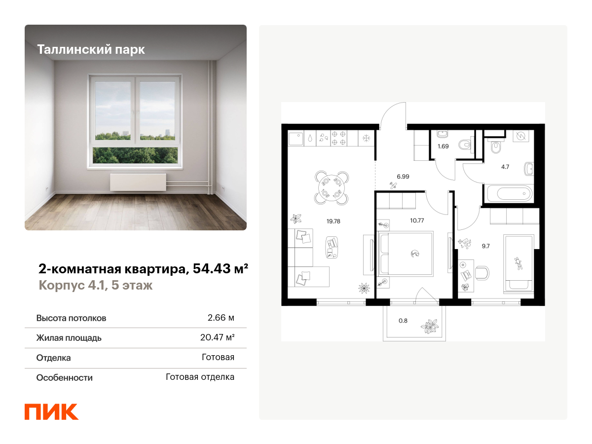В новостройке предложены студии, одно-, двух- и трехкомнатные квартиры. Площадь жилья от 27 до 86 квадратных метров. Часть планировок с остекленными балконами. В стоимость уже включена отделка под ключ, которая по критериям "ПИК-Стандарт" включает: