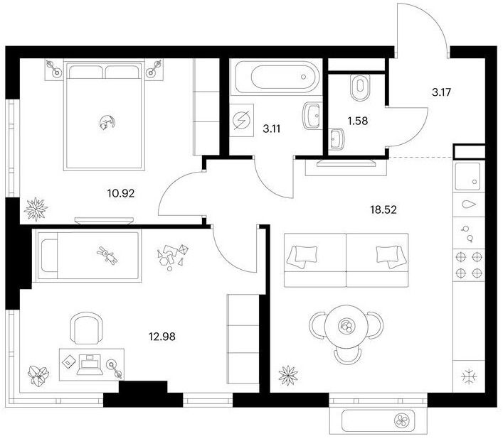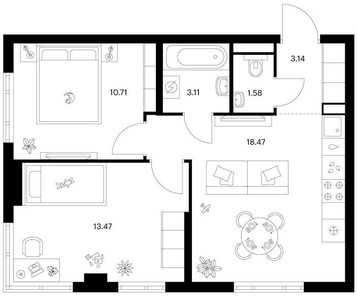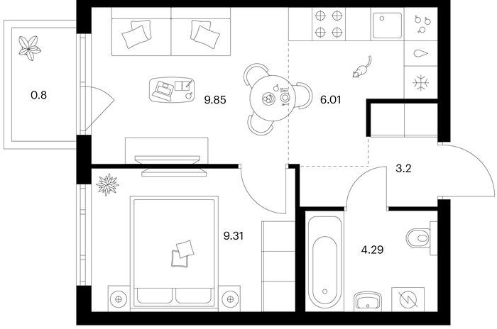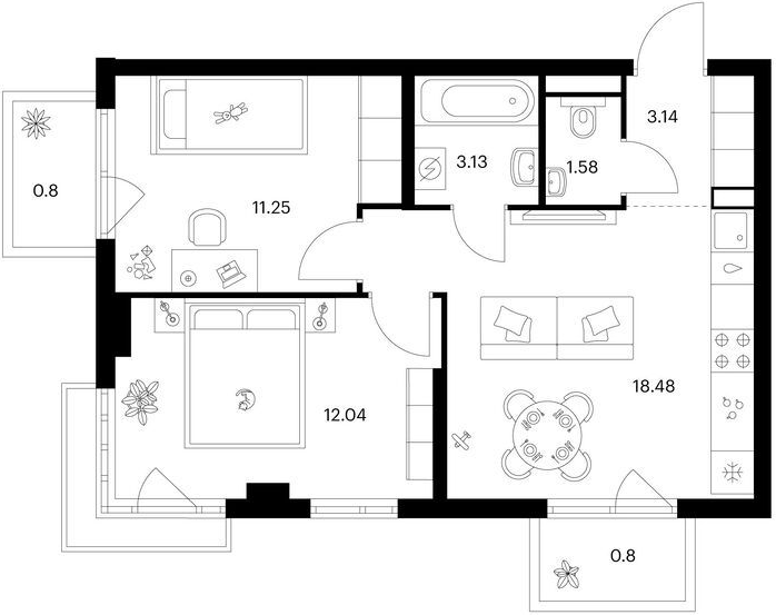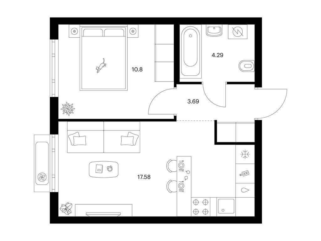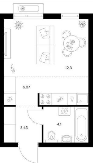 Студия (28 квартир, 13 планировок)