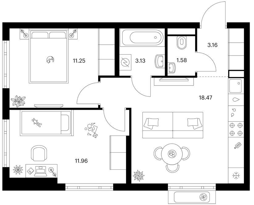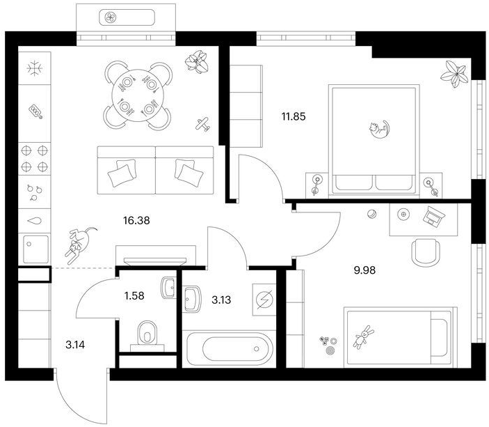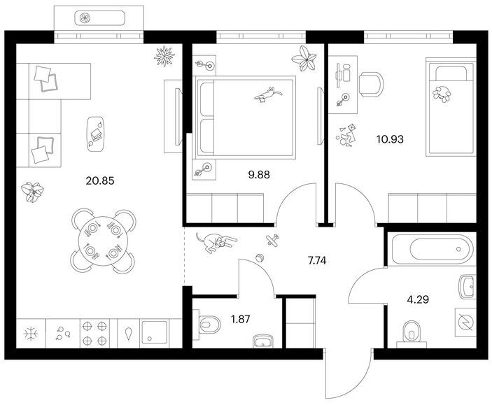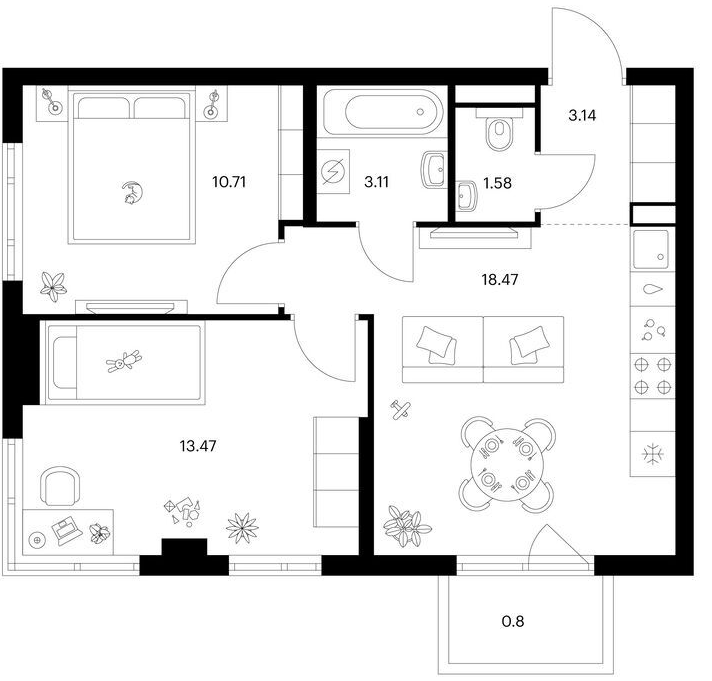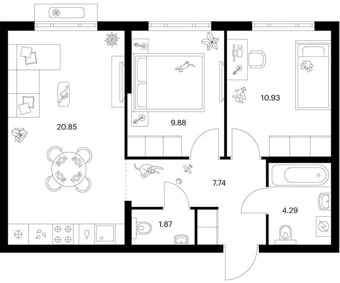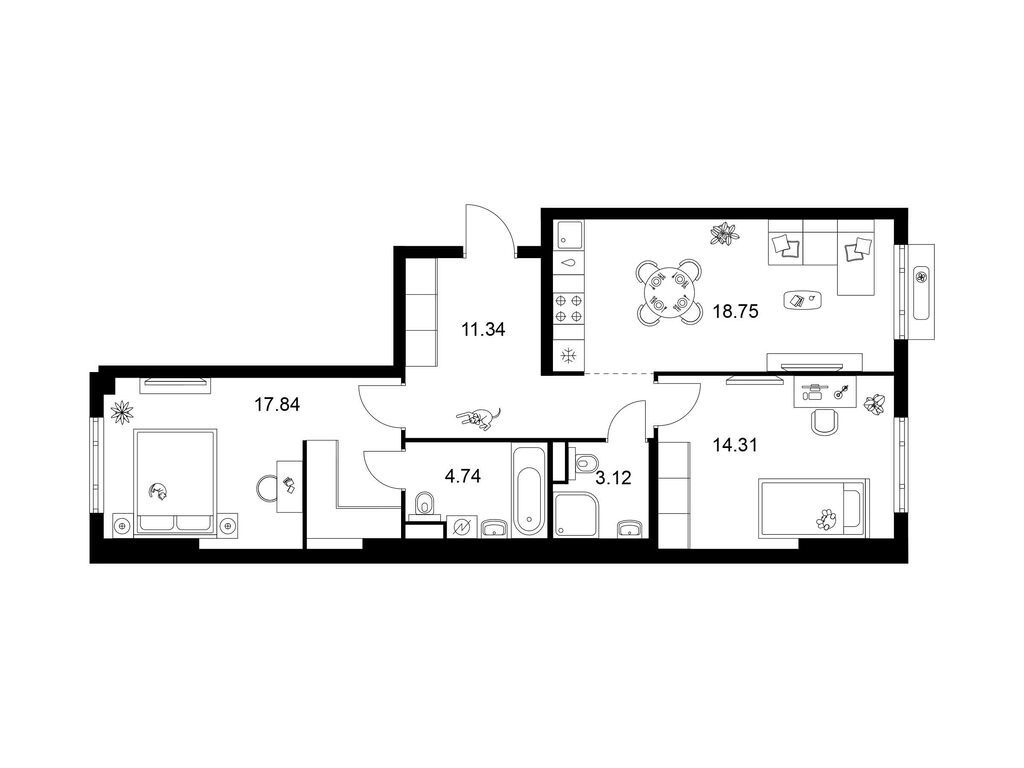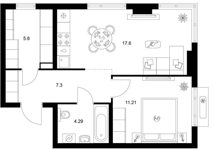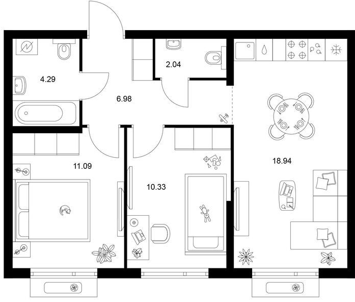Двухкомнатные квартиры (67 квартир, 39 планировок)