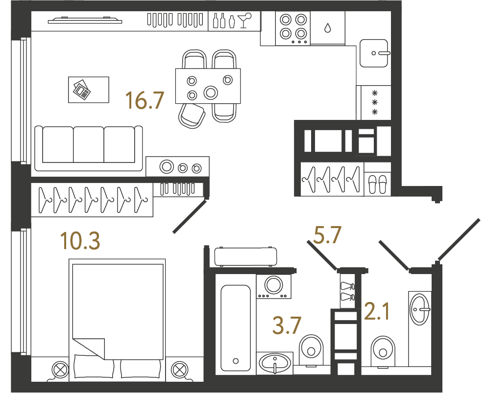 Студия (10 квартир, 3 планировки)