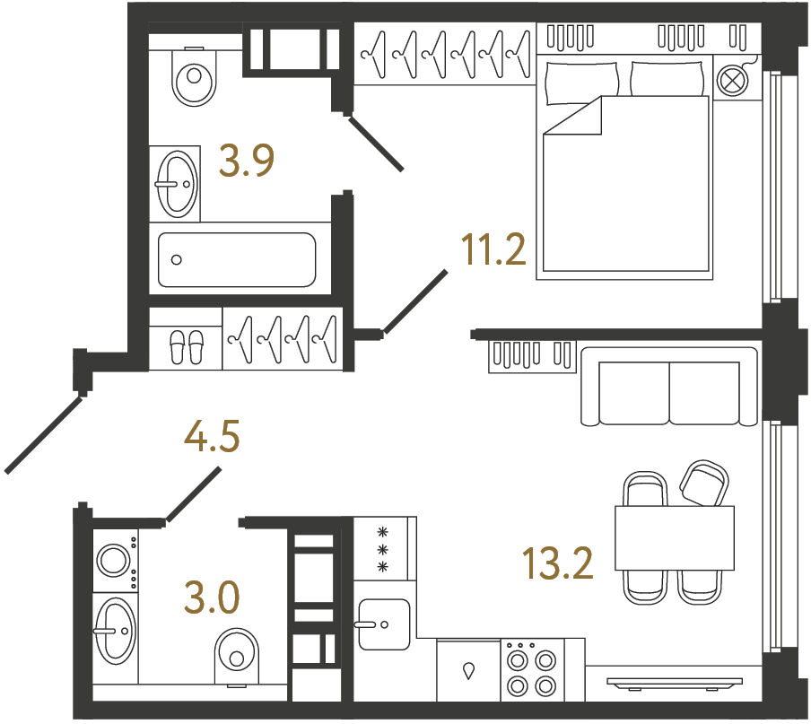 Двухкомнатные квартиры (66 квартир, 9 планировок)