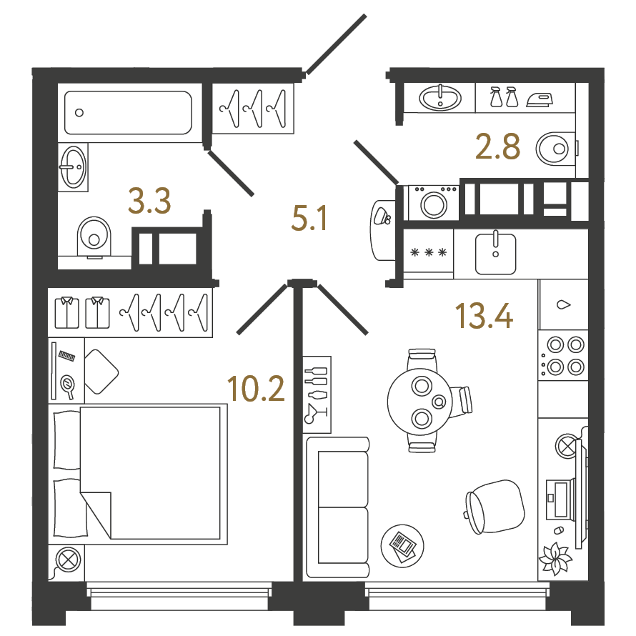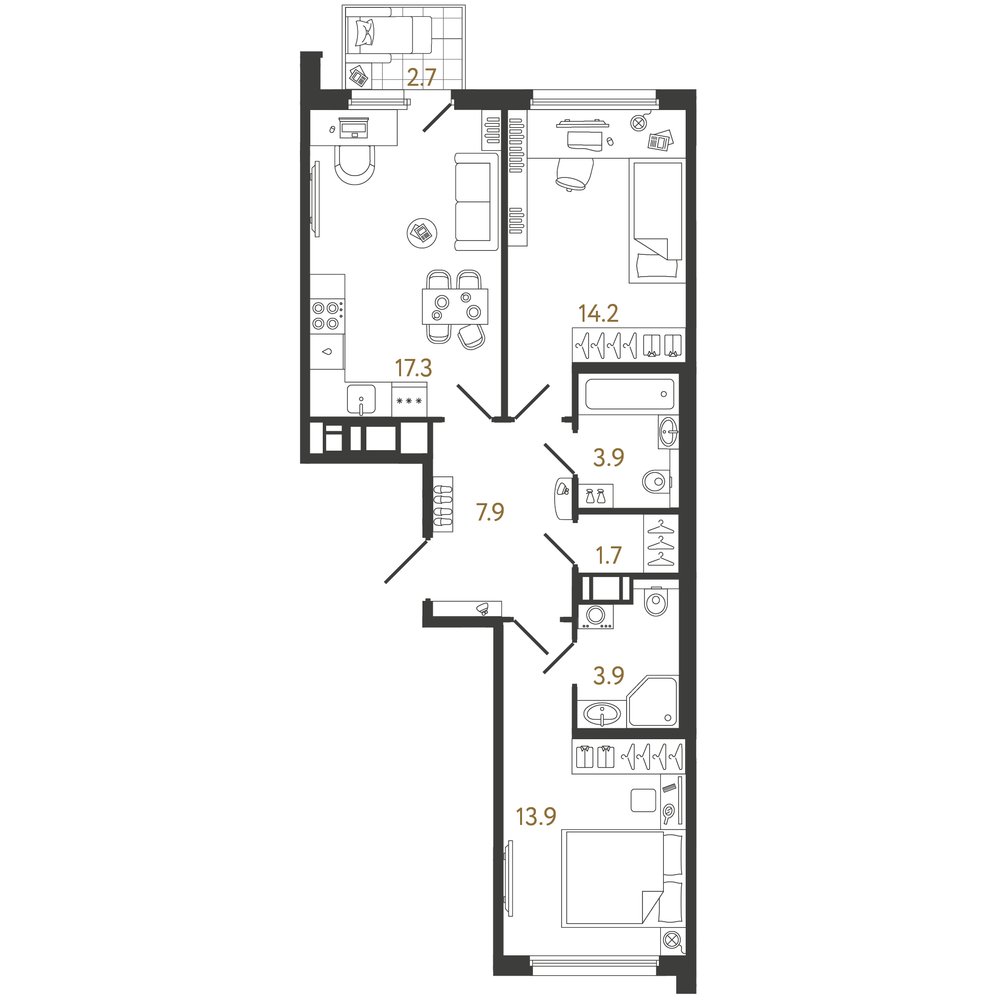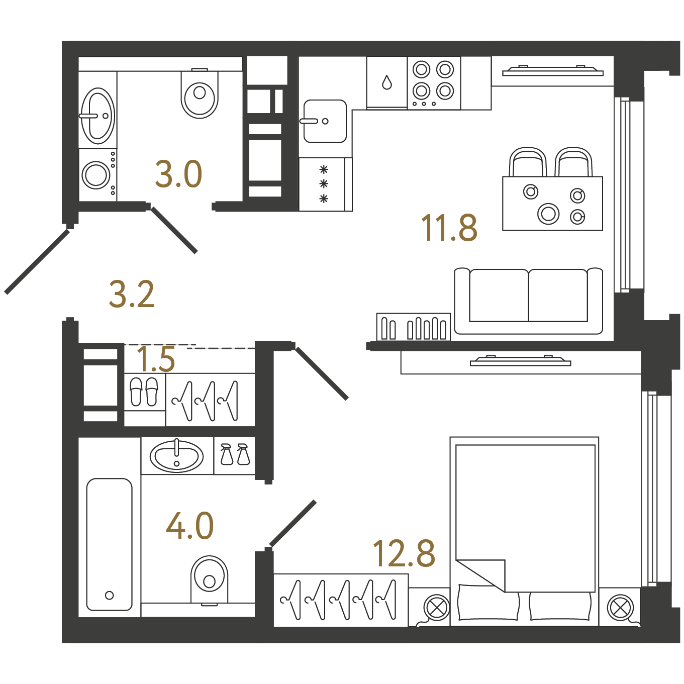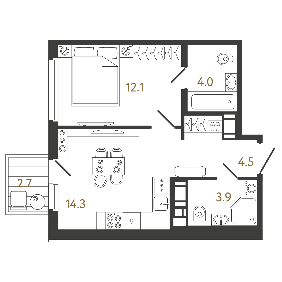 Студия (11 квартир, 3 планировки)