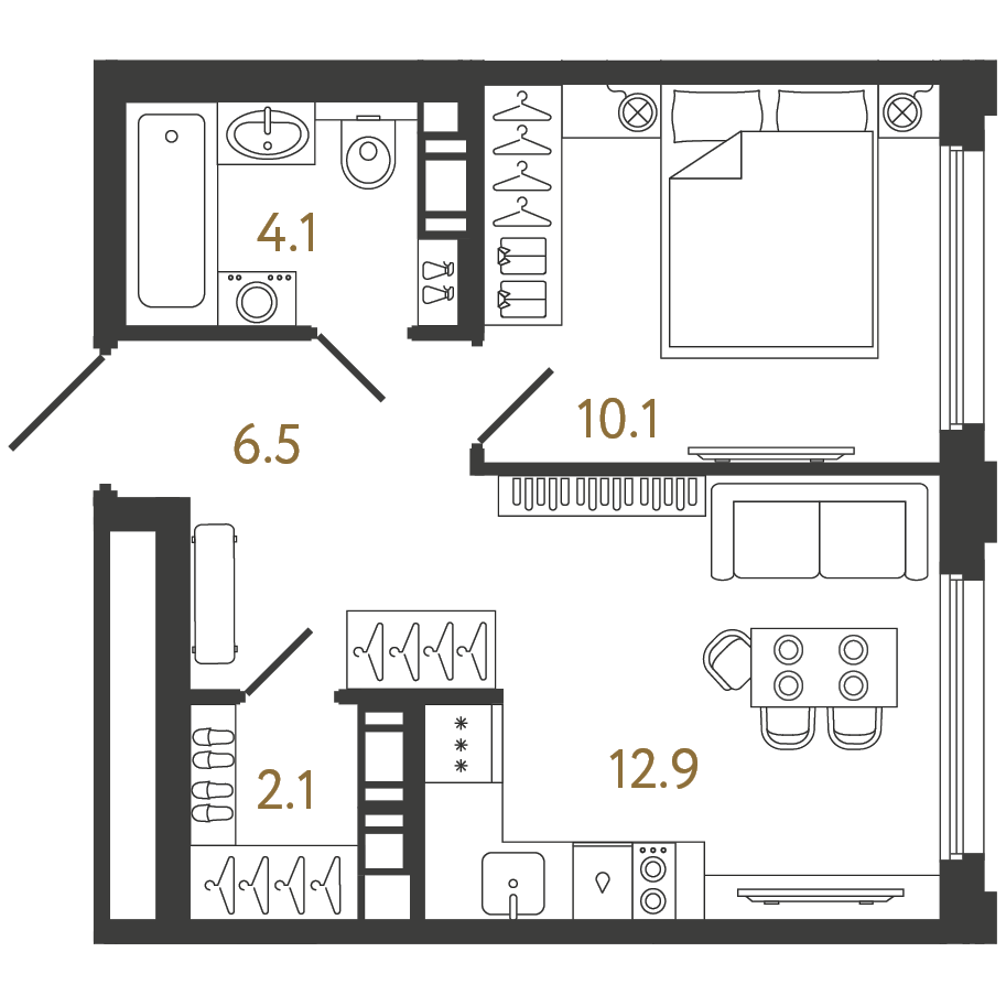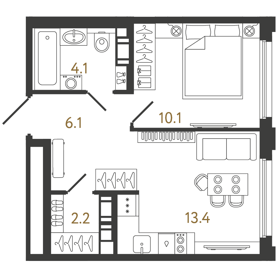 Однокомнатные квартиры (69 квартир, 13 планировок)