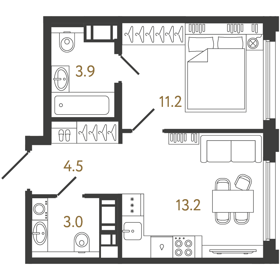 Двухкомнатные квартиры (67 квартир, 9 планировок)