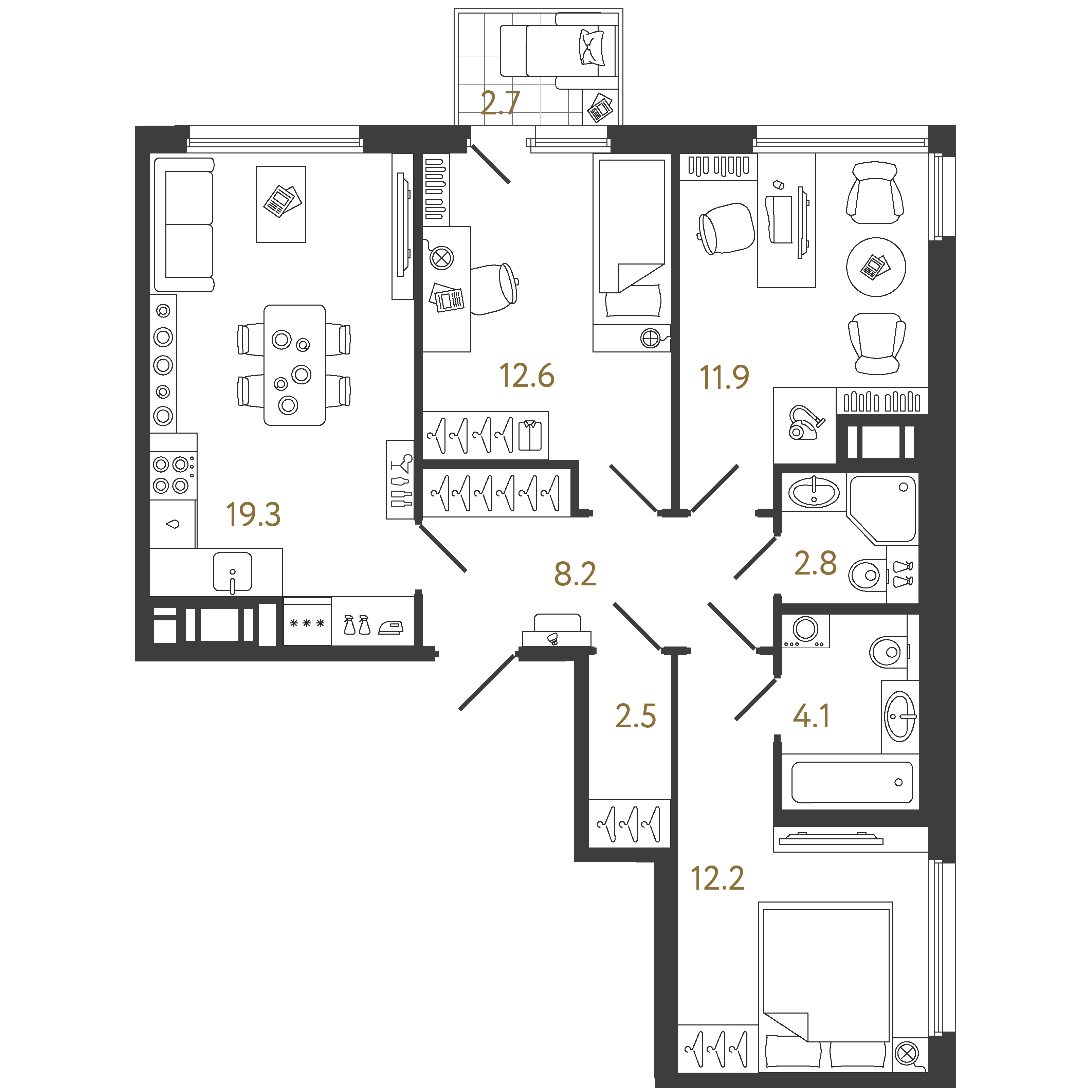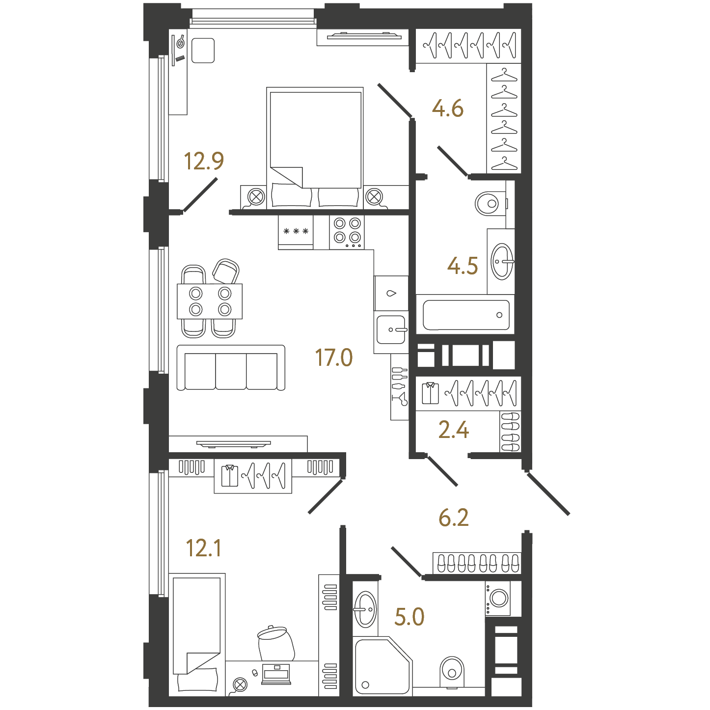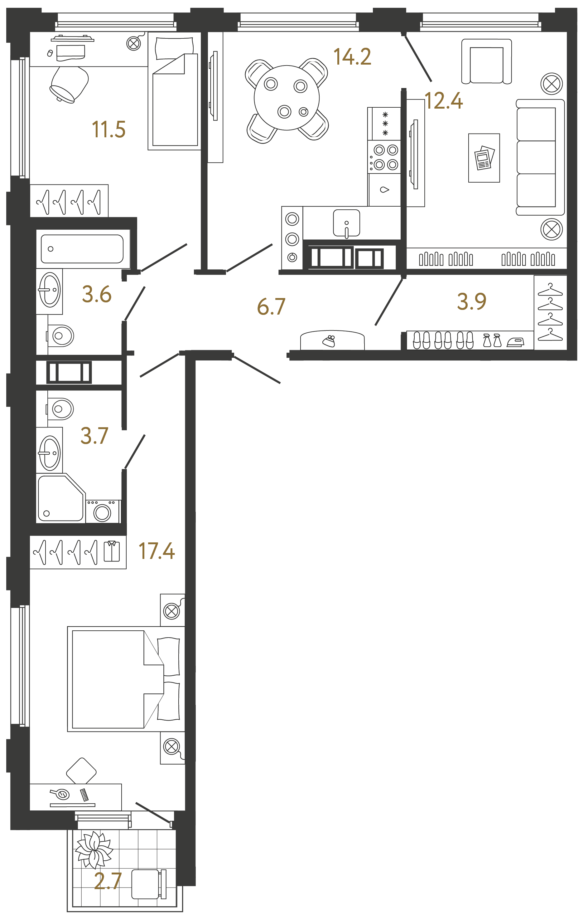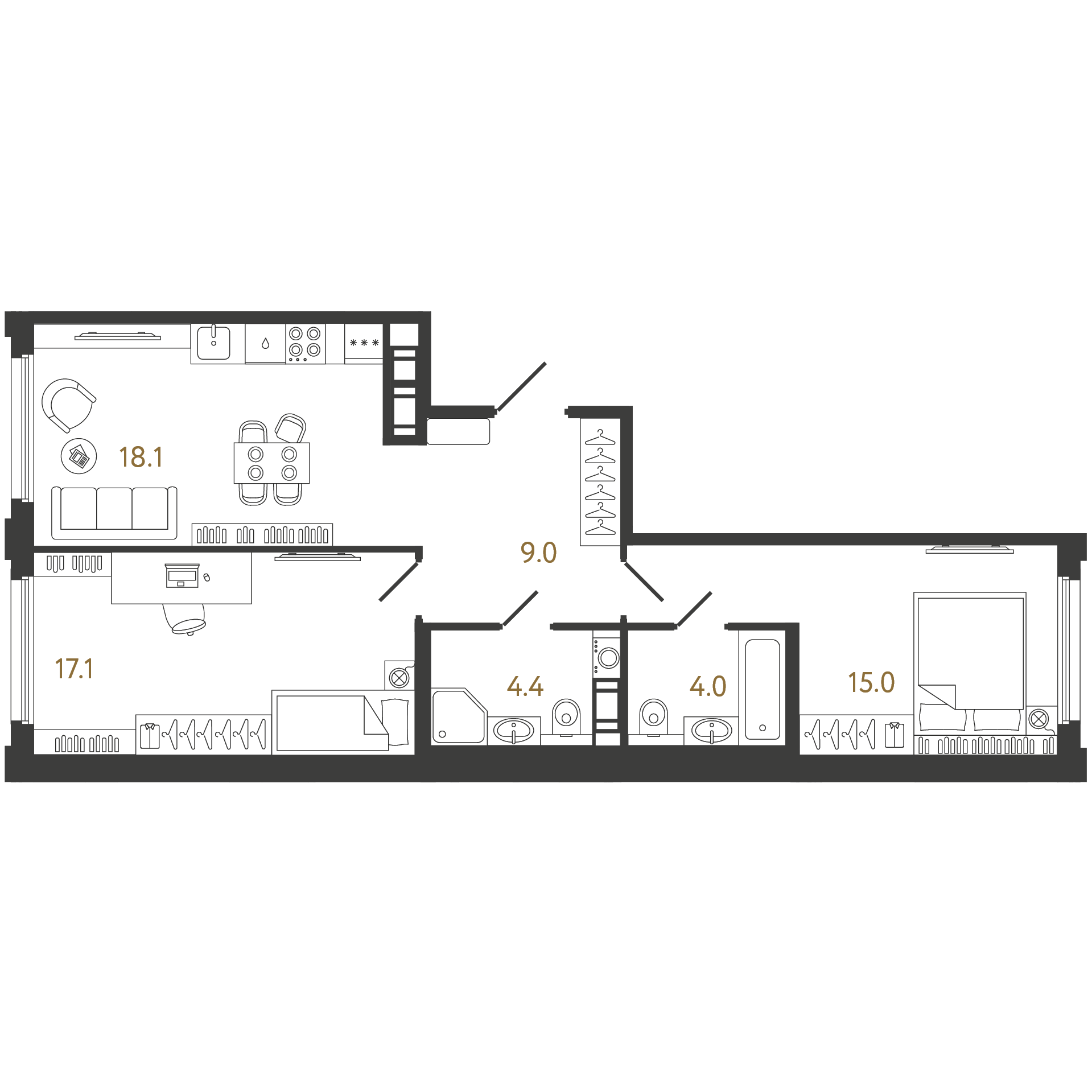 Трехкомнатные квартиры (16 квартир, 5 планировок)