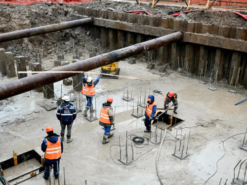 - Приступили к устройству монолитных конструкций подземного паркинга: идет монтаж колонн, монолитного перекрытия над первым уровнем паркинга.