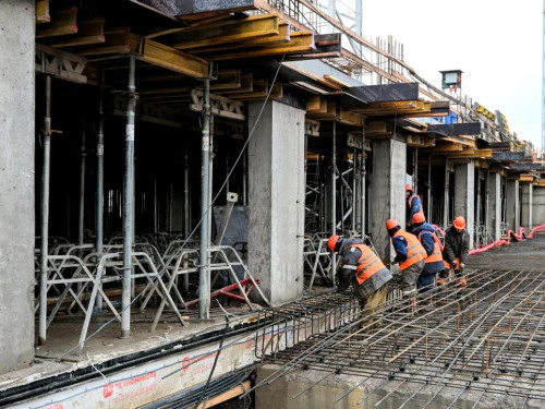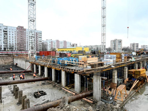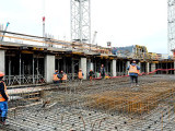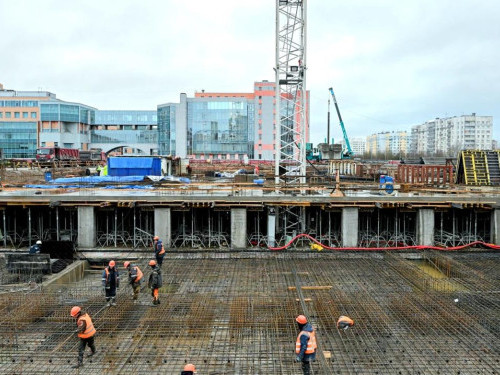 - На строительстве встроенно-пристроенного паркинга приступили к монтажу монолитных колонн и плиты перекрытия.