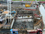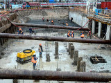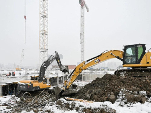 - Параллельно ведётся разработка котлована и устройство подземной части здания.