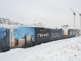 - На строительстве дома «Гений» продолжается организация стройплощадки, устройство свайного поля.