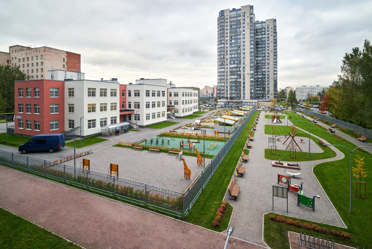 Открыты продажи в 3м корпусе. Там самые видовые квартиры. На фото- вид с окна на променад вдоль детского сада № 44 с бассейном, построенного СК "Темп" и Актерским проездом.