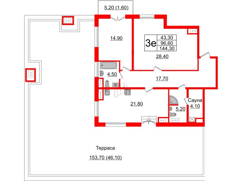 Трехкомнатные квартиры (1 квартира, 1 планировка)