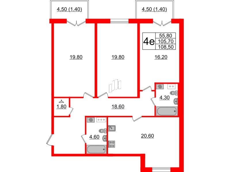 ![]() | 108.5 м2 | 55.8 | 20.6 | 4 этаж | Сдана | 297 235 a/м2 | 32 249 998 руб |