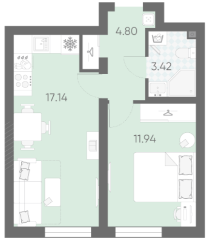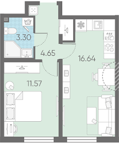 Однокомнатные квартиры (9 квартир, 9 планировок)