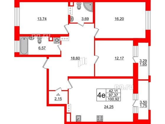 Трехкомнатные квартиры (4 квартиры, 4 планировки)