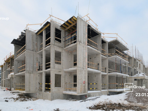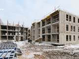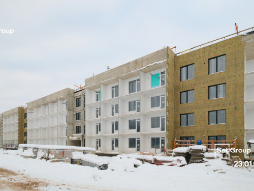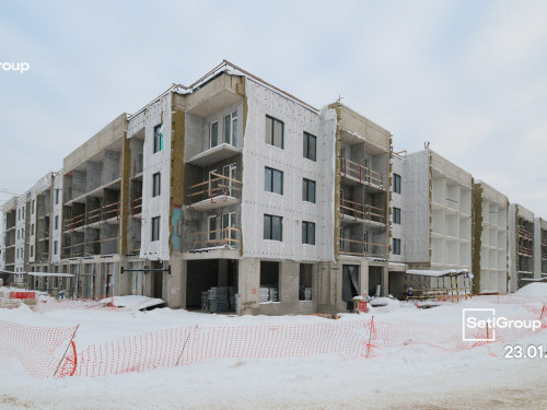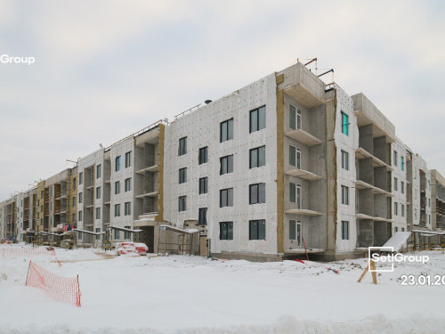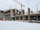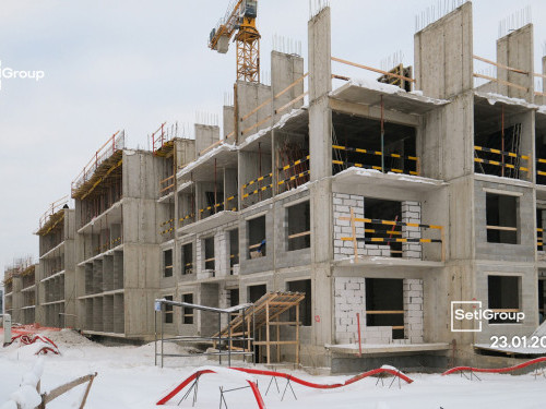 - Выполняются работы по монтажу оконных блоков на уровне 1-4 этажей, готовность 60%.