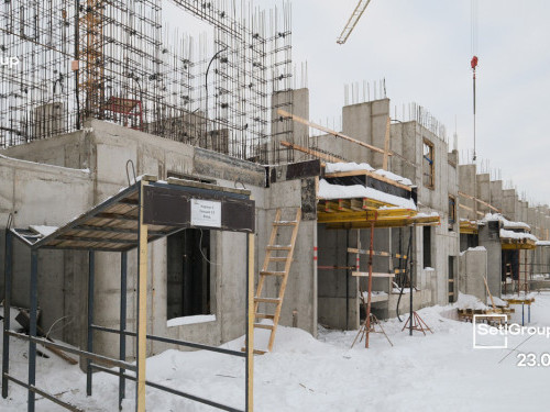 - Завершены работы по устройству монолитного каркаса и каменной кладки.