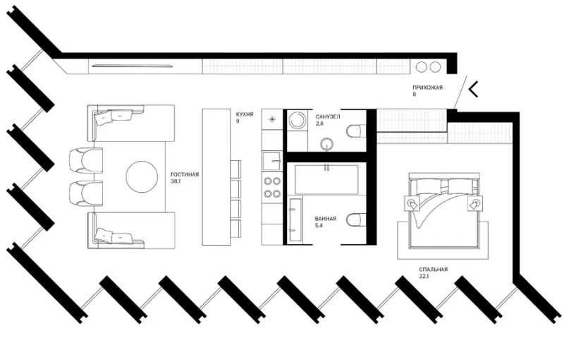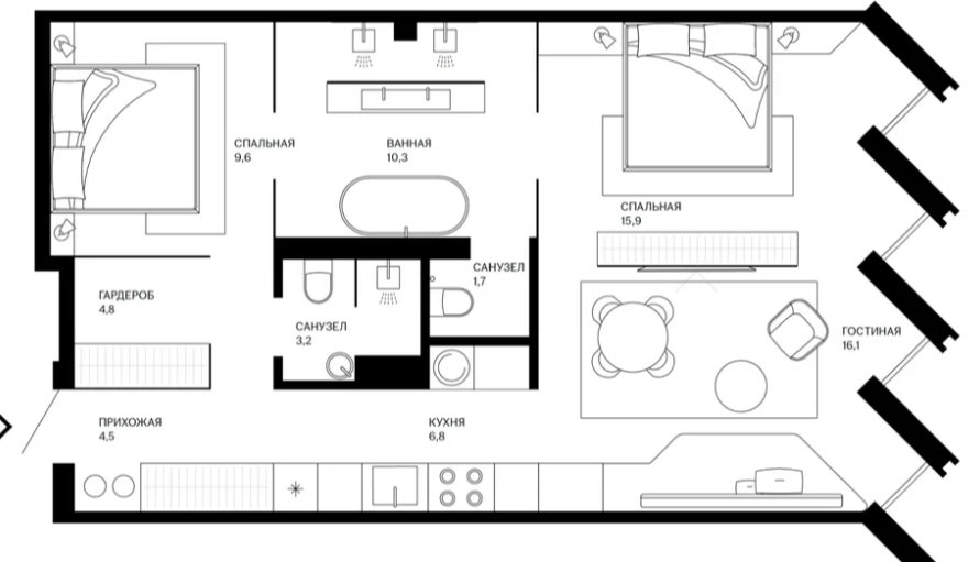 Двухкомнатные апартаменты (2 апартаментов, 2 планировки)