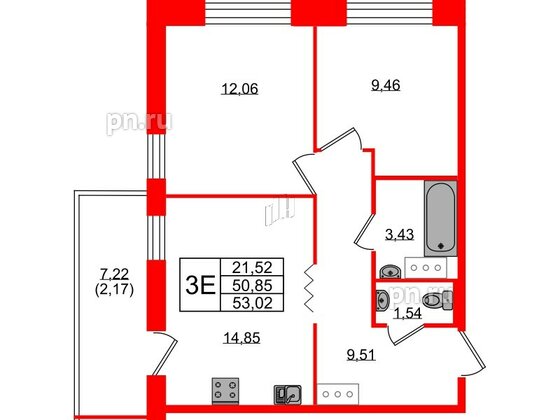 Трехкомнатные квартиры (3 квартиры, 3 планировки)
