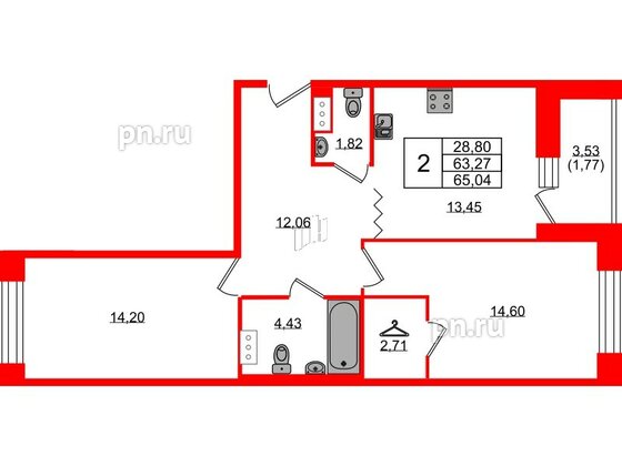 Двухкомнатные квартиры (7 квартир, 7 планировок)