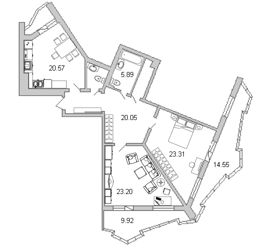 - двухкомнатные 40,7-144,5 кв.м.;