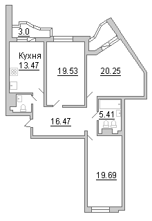Трехкомнатные квартиры (4 квартиры, 4 планировки)