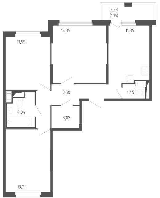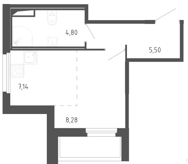 Студия (1 квартира, 1 планировка)
