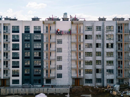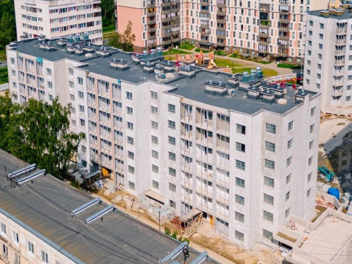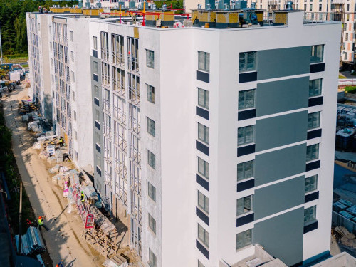 - Идут отделочные работы в квартирах, монтаж светопрозрачных конструкций, устройство штукатурного фасада, слаботочных систем и установка электротехнических приборов.