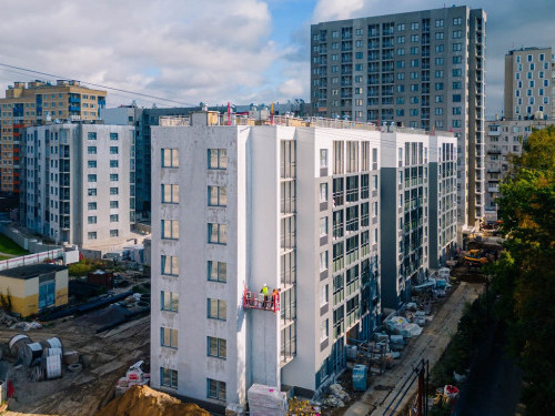 - Выполняются отделочные работы в квартирах и МОП, устройство штукатурного фасада, слаботочных систем и электротехнических устройств, кровли подземного паркинга, монтаж светопрозрачных конструкций.