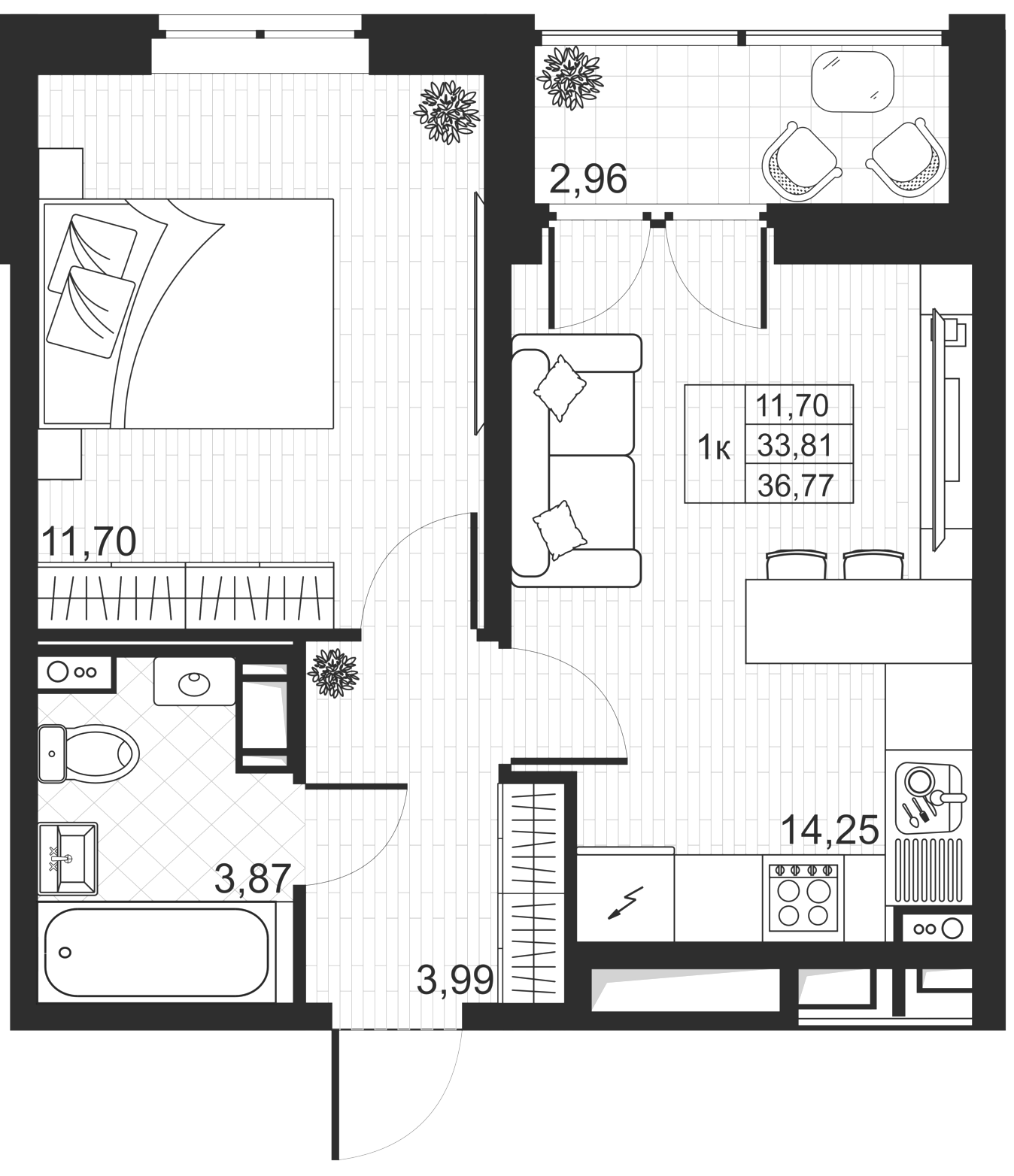Однокомнатные квартиры (86 квартир, 39 планировок)