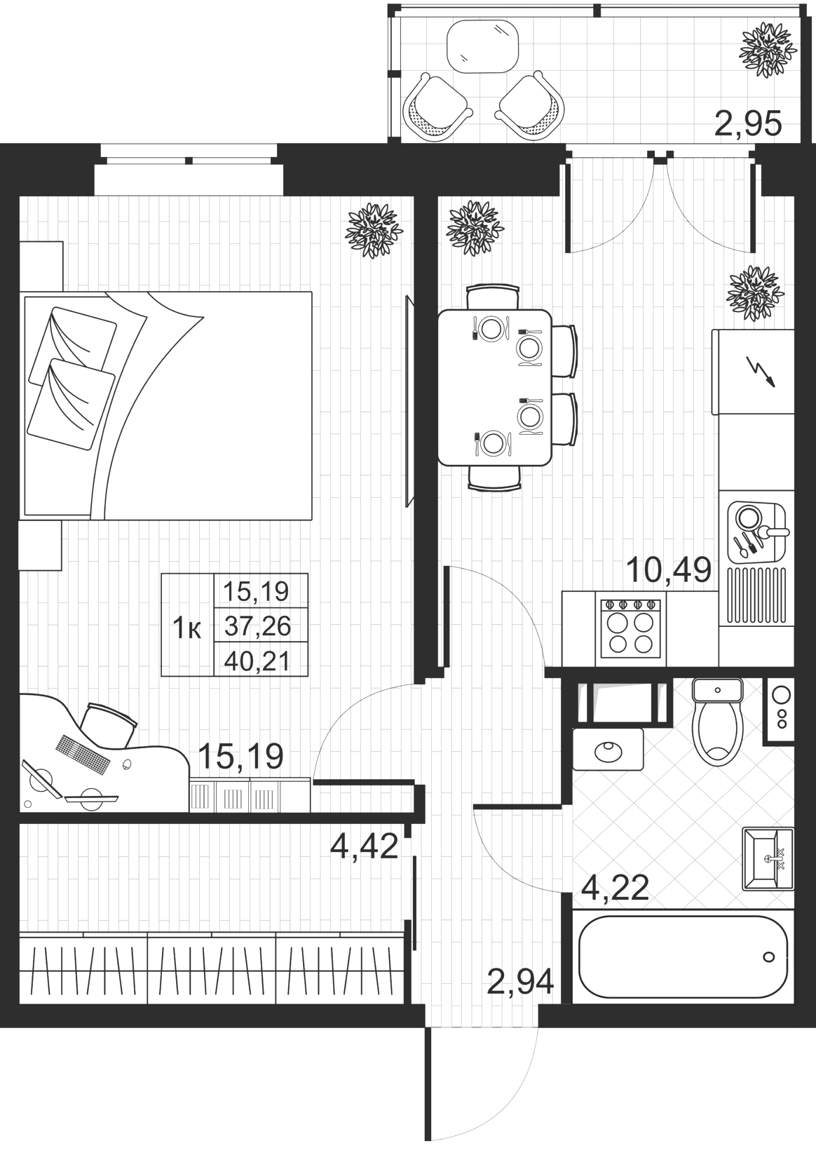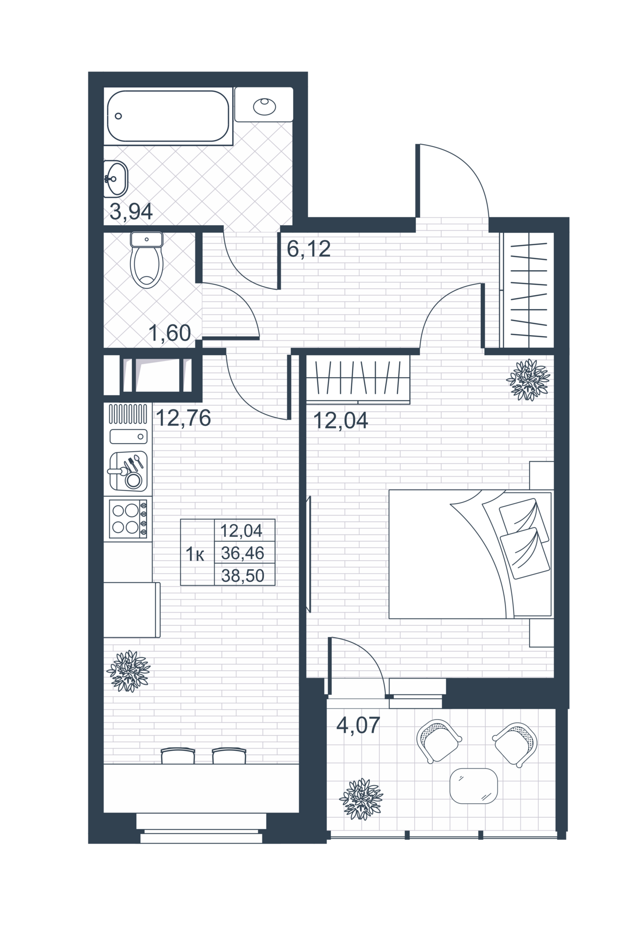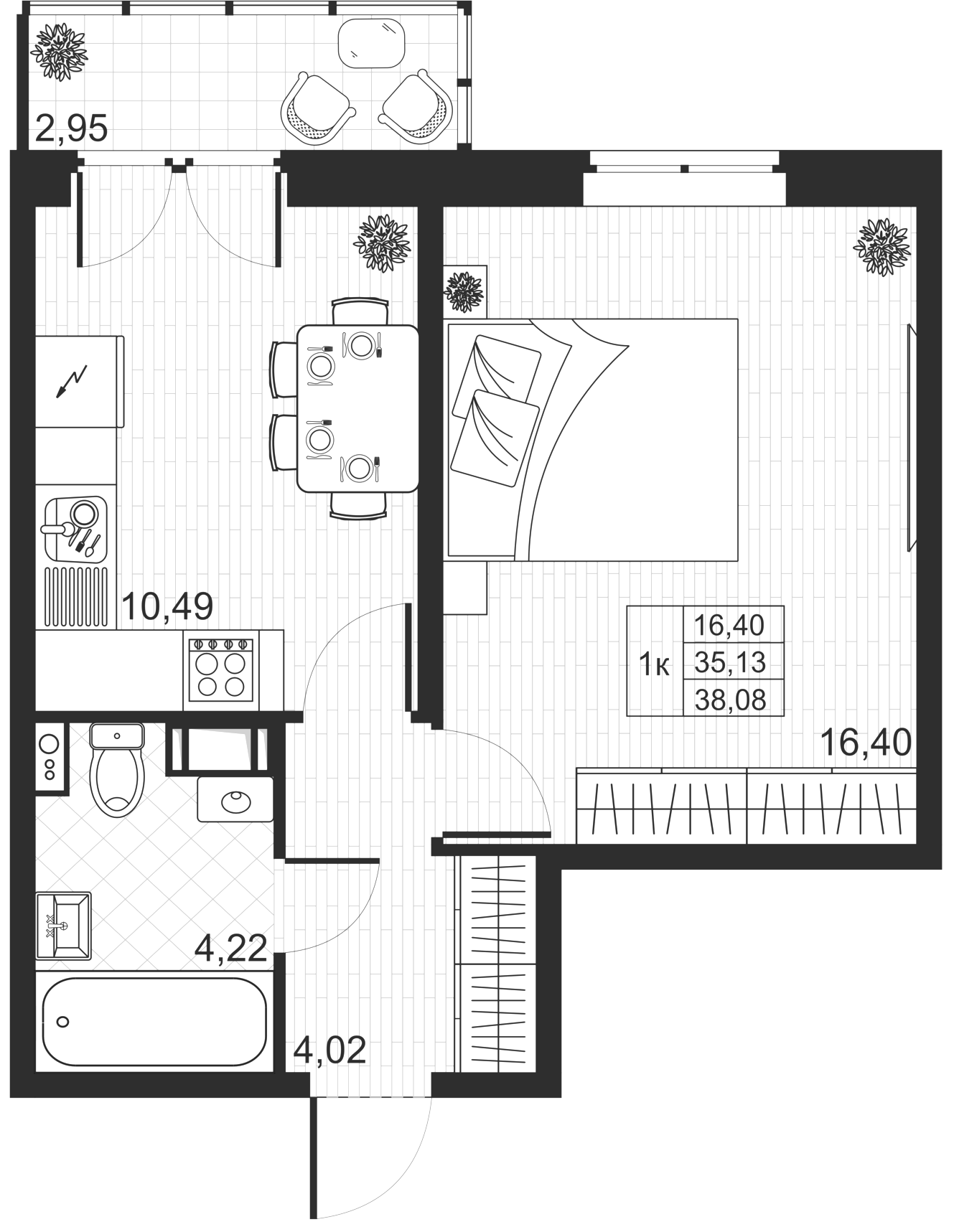 Однокомнатные квартиры (64 квартиры, 35 планировок)