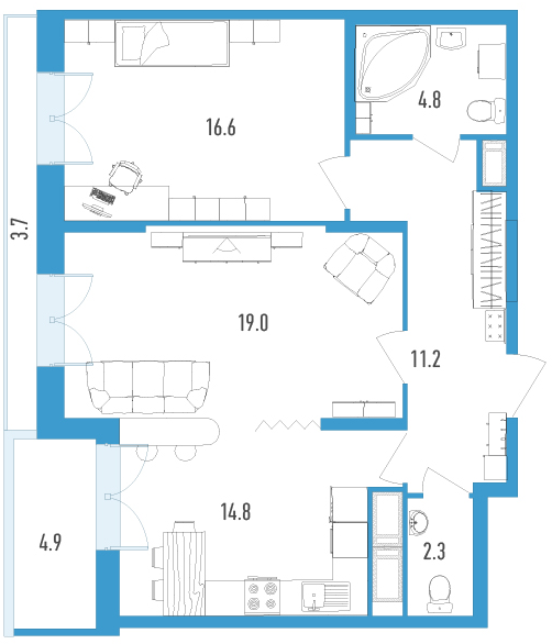 Двухкомнатные квартиры (3 квартиры, 3 планировки)