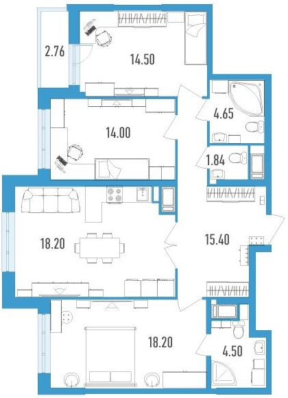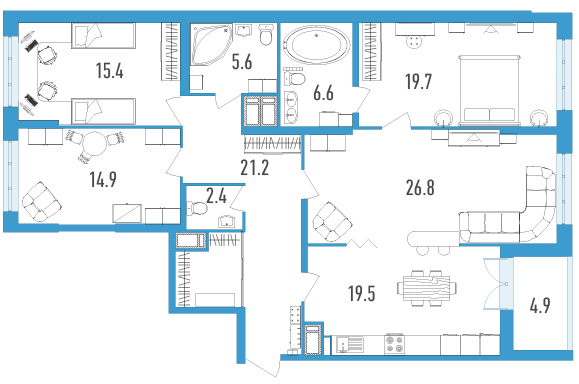 Четырехкомнатные квартиры (2 квартиры, 2 планировки)