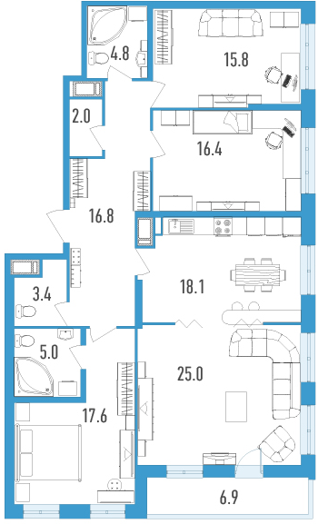 Трехкомнатные квартиры (2 квартиры, 2 планировки)