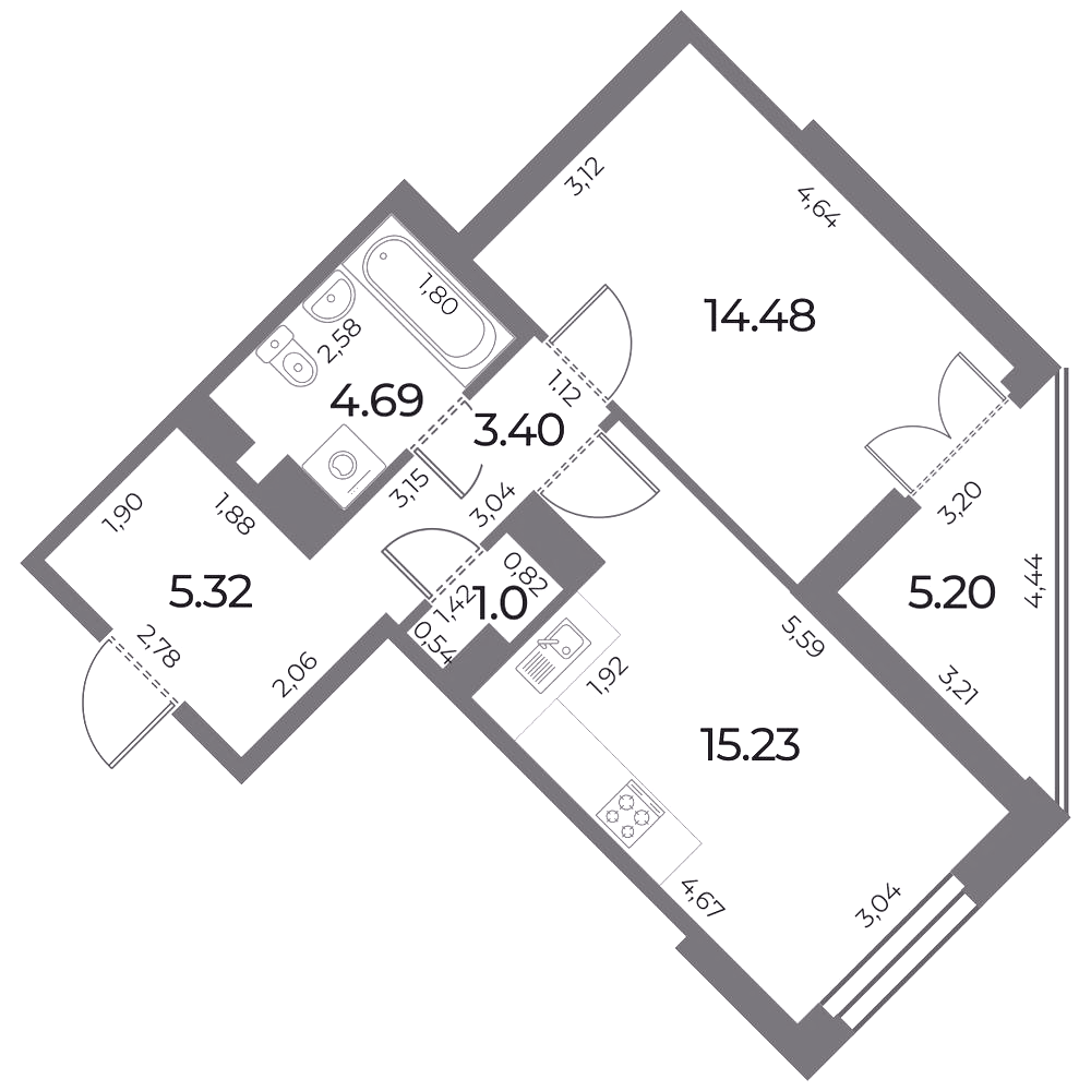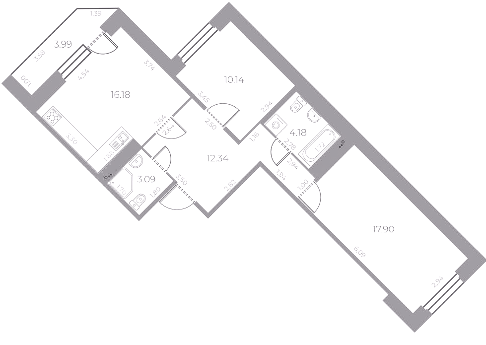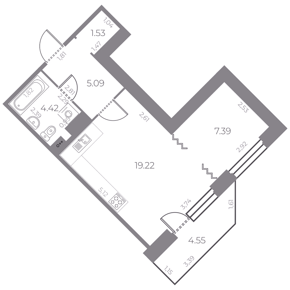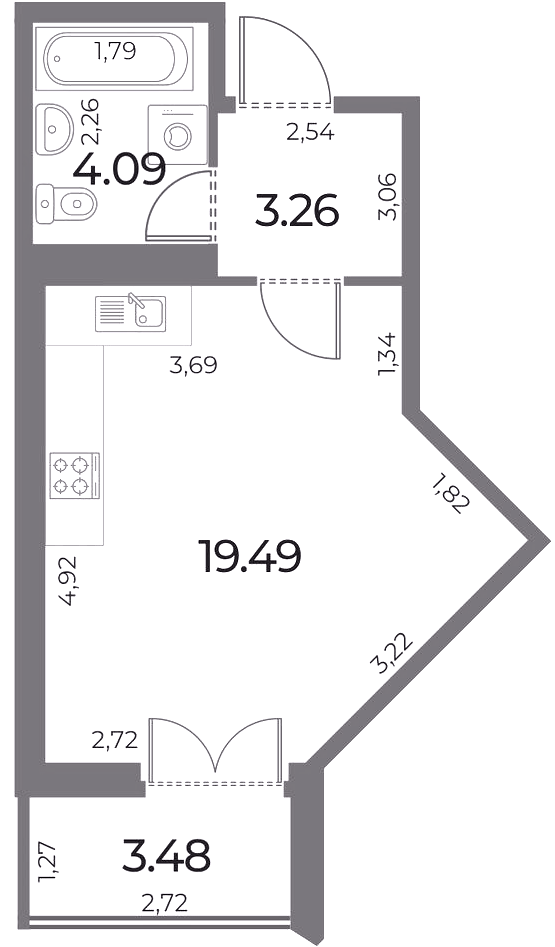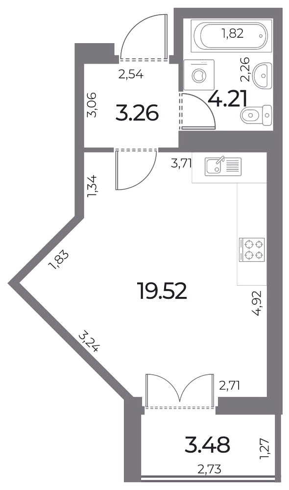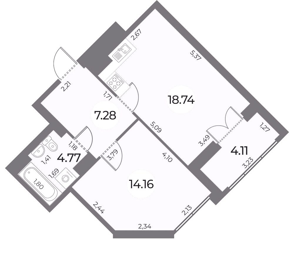 Однокомнатные квартиры (21 квартира, 13 планировок)