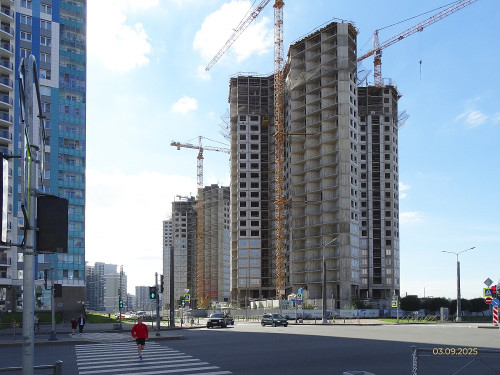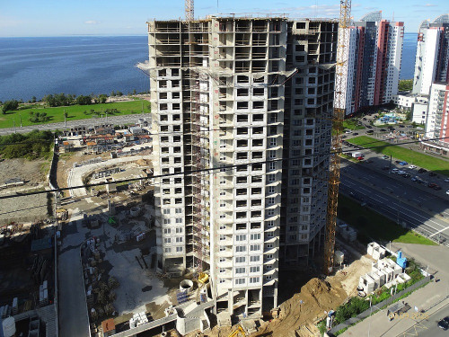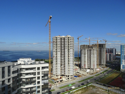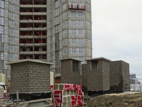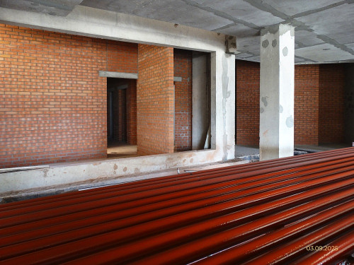 - Монтаж систем отопления, канализации, электроснабжения, вентиляции в жилой части здания и в паркинге выполнен на 3%.
