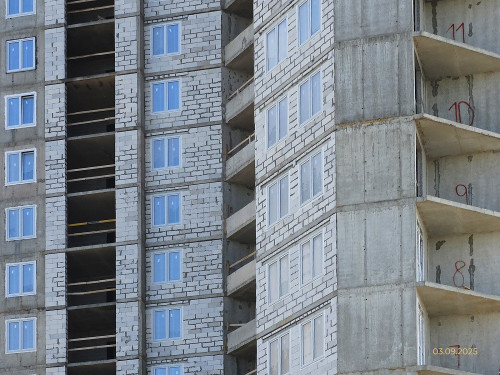 - Выполняется монтаж оконных блоков и балконных дверей.