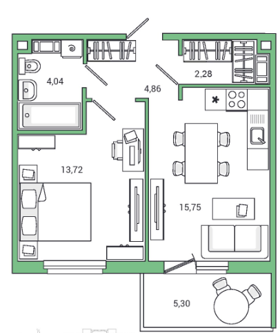 Однокомнатные квартиры (9 квартир, 9 планировок)