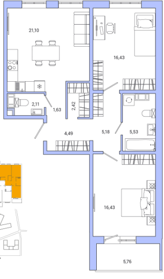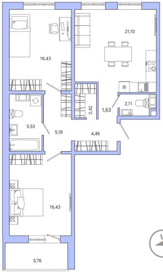 Двухкомнатные квартиры (8 квартир, 8 планировок)