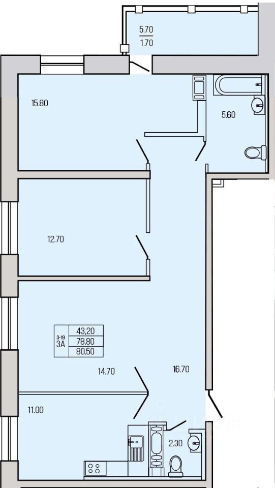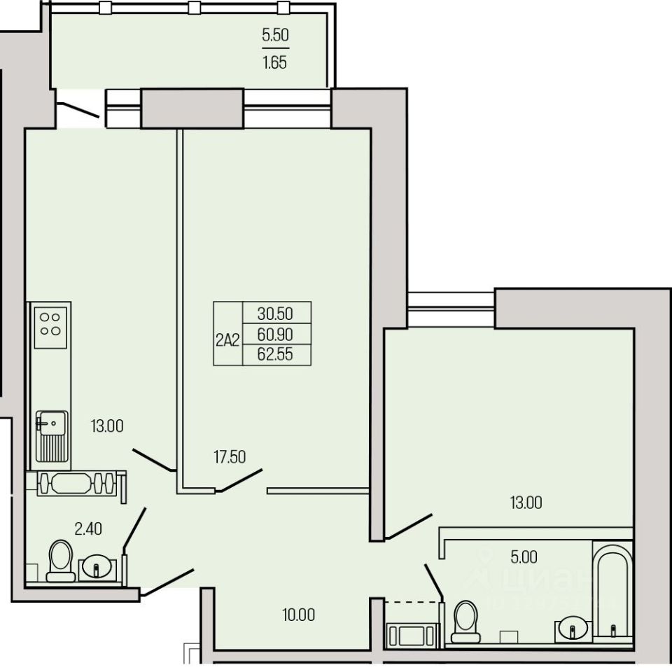 Двухкомнатные квартиры (3 квартиры, 3 планировки)